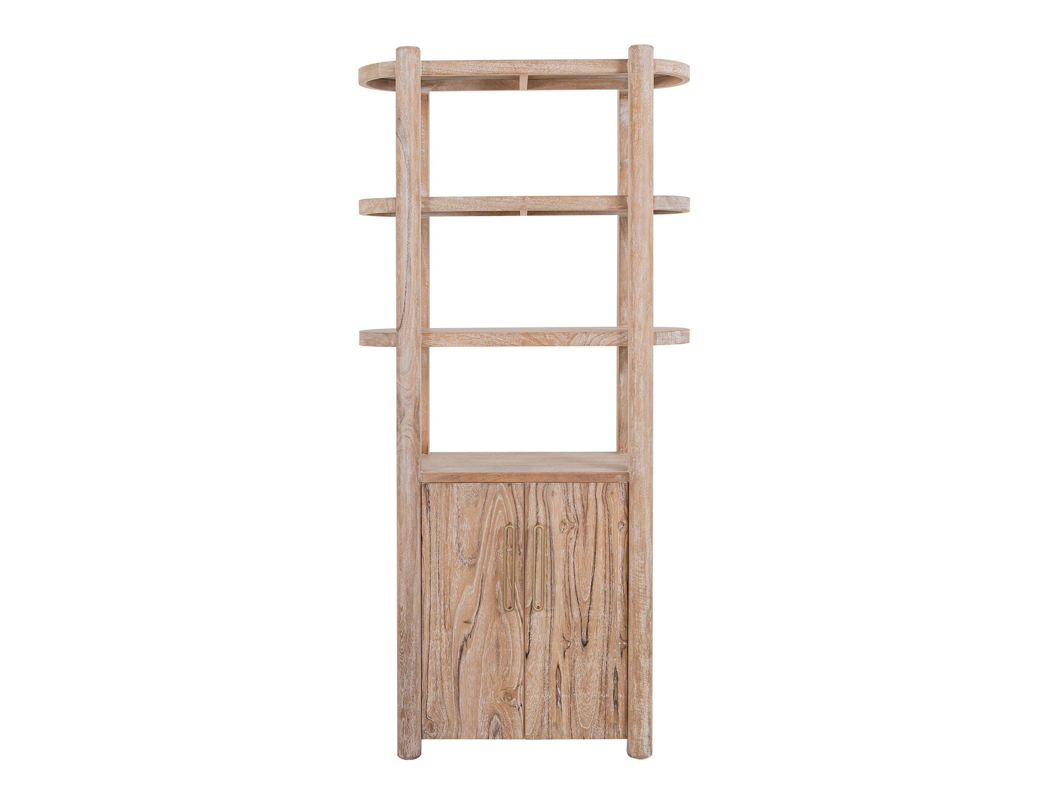 2 Door, 3 Shelf Pier. Our exquisite Balam collection is meticulously handcrafted using high-quality mango and teak wood. This simple yet striking collection is designed to infuse your space with an organic, modern aesthetic. It boasts a unique organic shape, featuring elegantly curved oval shelves at the top and storage cabinet, adding a touch of sophistication to any room.