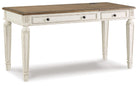 Elevating the art of traditional cottage styling, this desk is your heavenly home office realized. Its antiqued two-tone aesthetic blends a chipped white with a distressed wood tone top for added charm. Framed drawer fronts, decorative corbels and elegantly turned and tapered legs add refinement, while dark bronze-tone knobs lend a classic touch. And this desk is also built for productivity. A spring lift top raises the surface to a comfortable standing position, while the built-in power supply and dual USB ports keep your devices close at hand and ready to go.