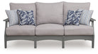 This outdoor sofa prioritizes versatile style and comfort, all while providing the durability you need al fresco. Crafted of a sturdy, wood-look material, it withstands the elements with ease. Cleanable and UV-resistant Nuvella® fabric rounds out the piece with added function.