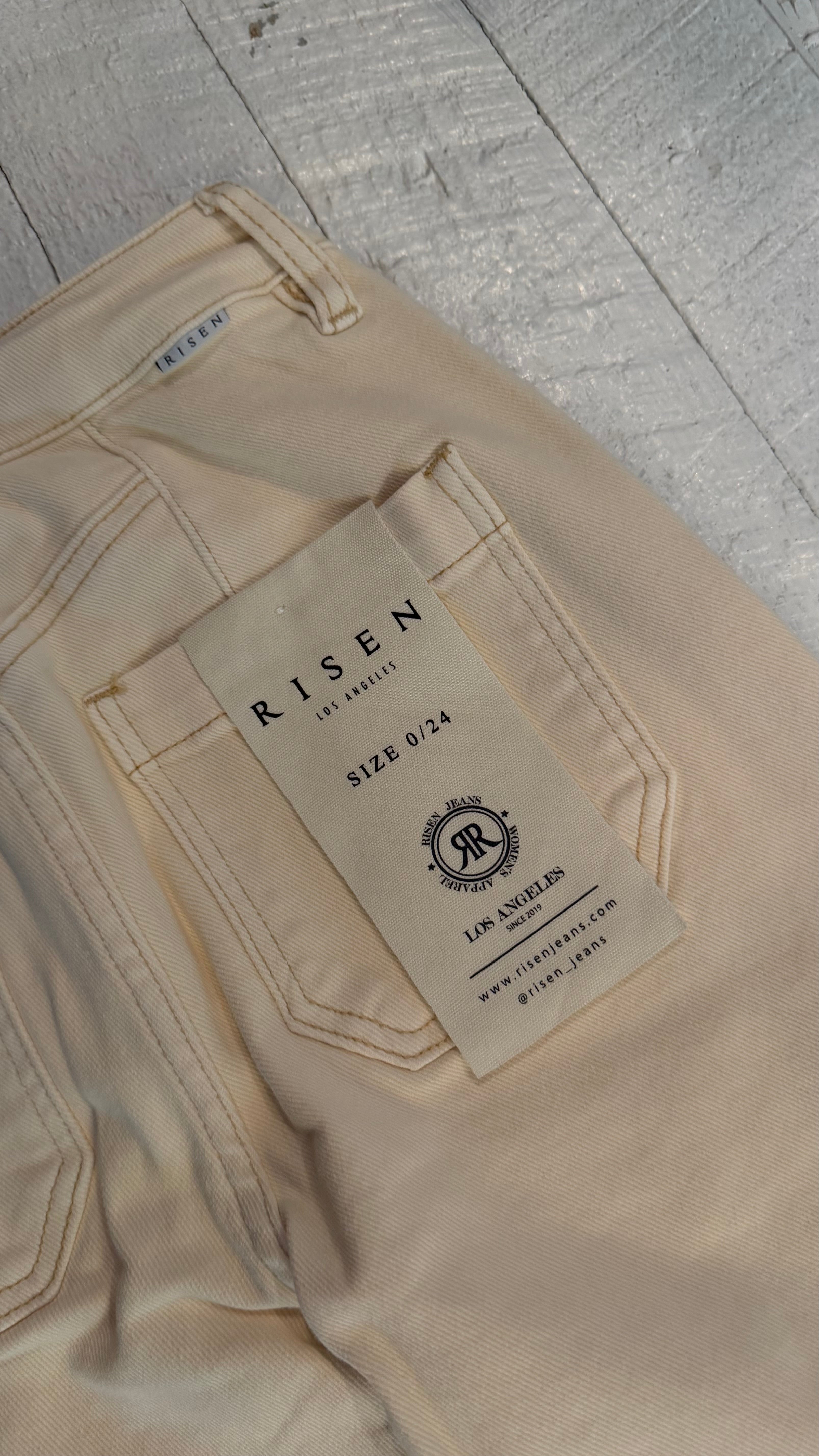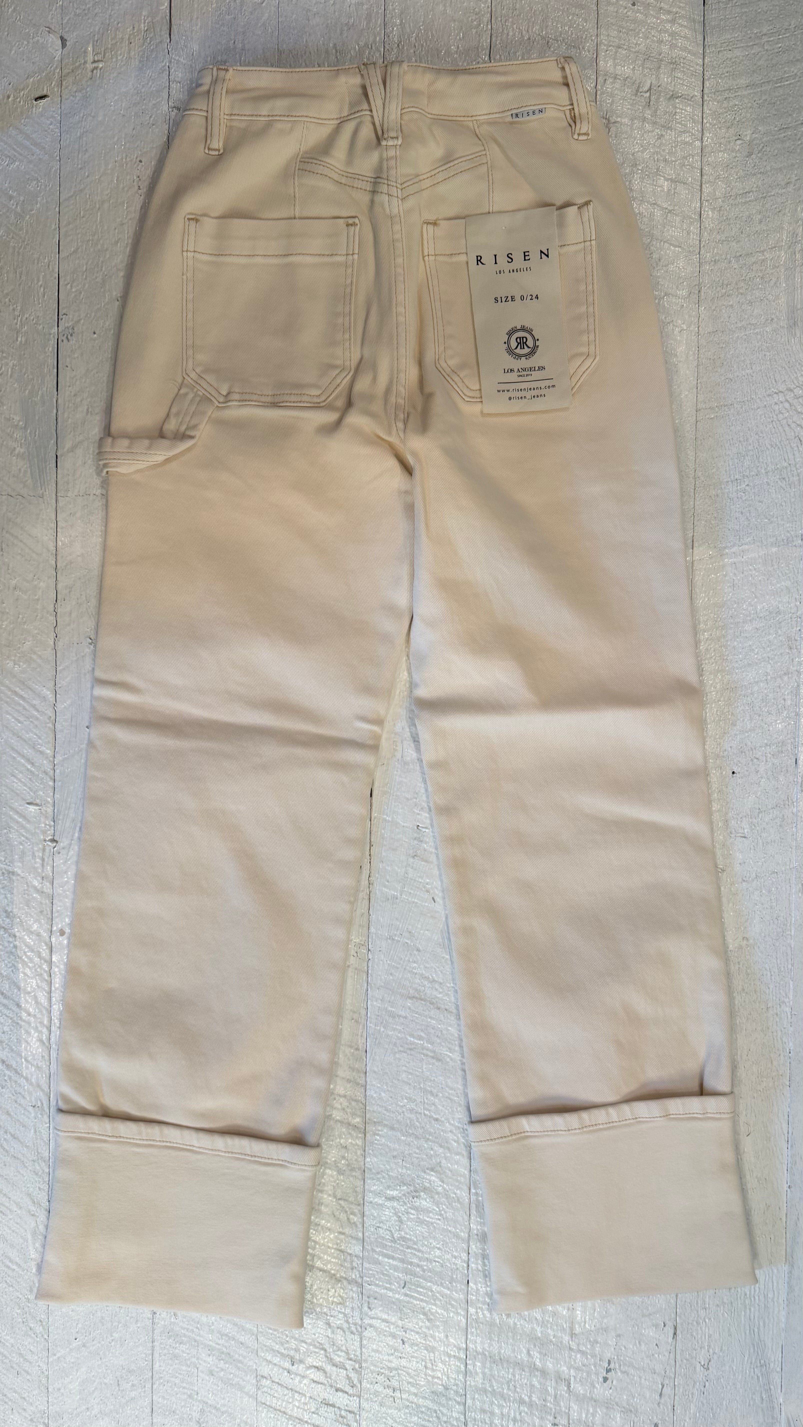 Risen High Rise Straight Turn Up Cuffed Patch Pocket Detail Pants