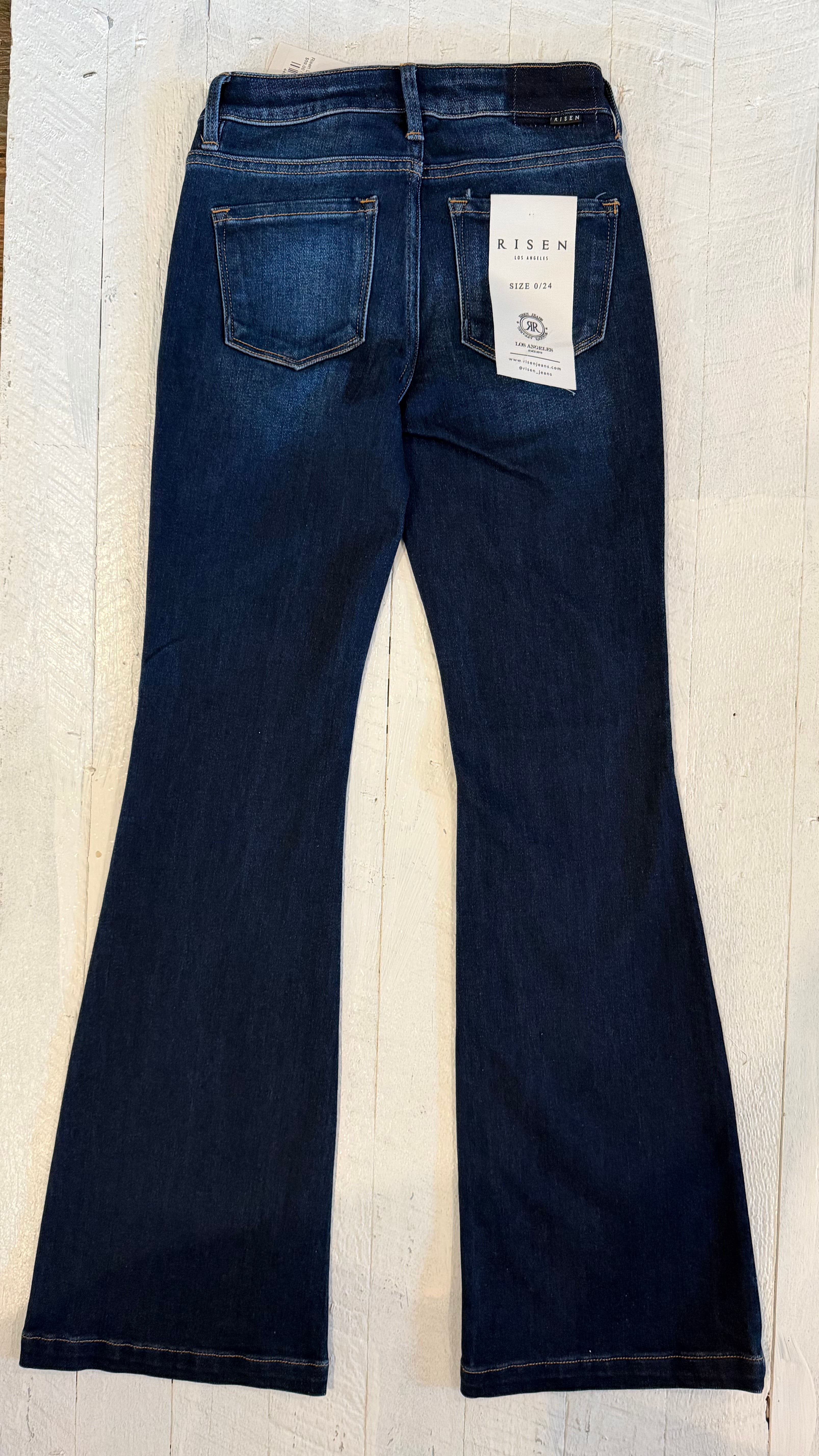 - Low-rise fit with a fashion-forward flare leg that elongates and flatters