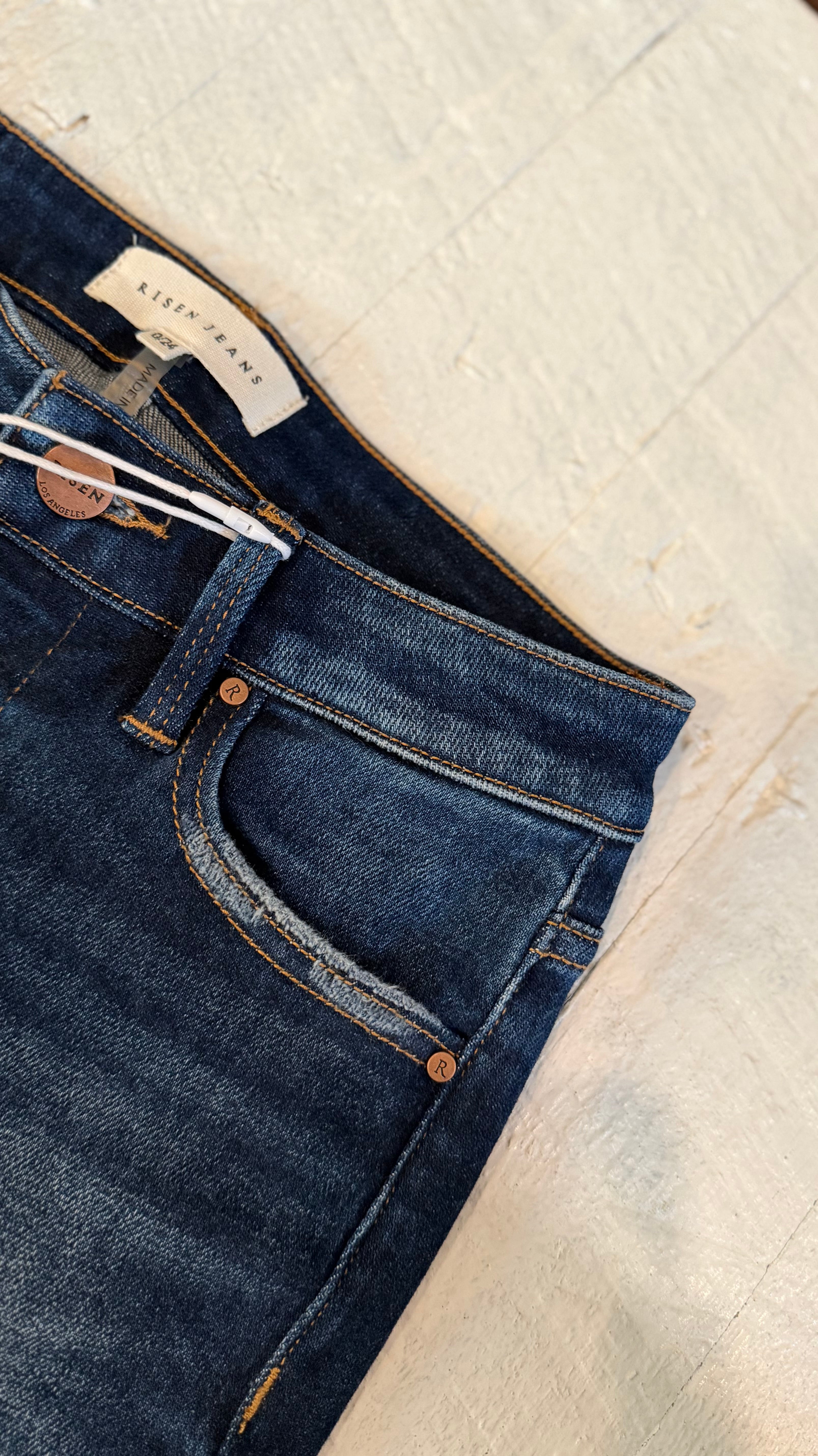 - Stretchy denim fabric offers comfort without sacrificing a polished look