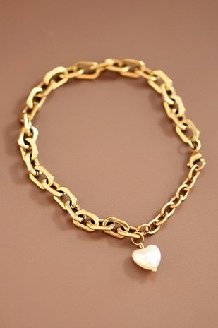 18K Non-Tarnish Stainless Steel Heart Charm Chain Bracelet