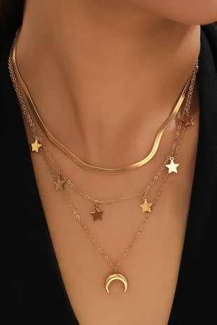 Multi-strand SS Necklace| Moon &Stars