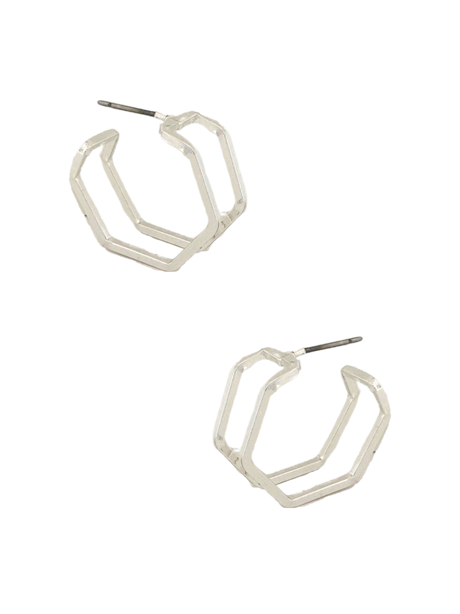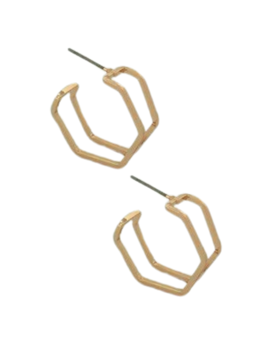 - These Desirae earrings feature a unique hexagon shape and a shiny finish