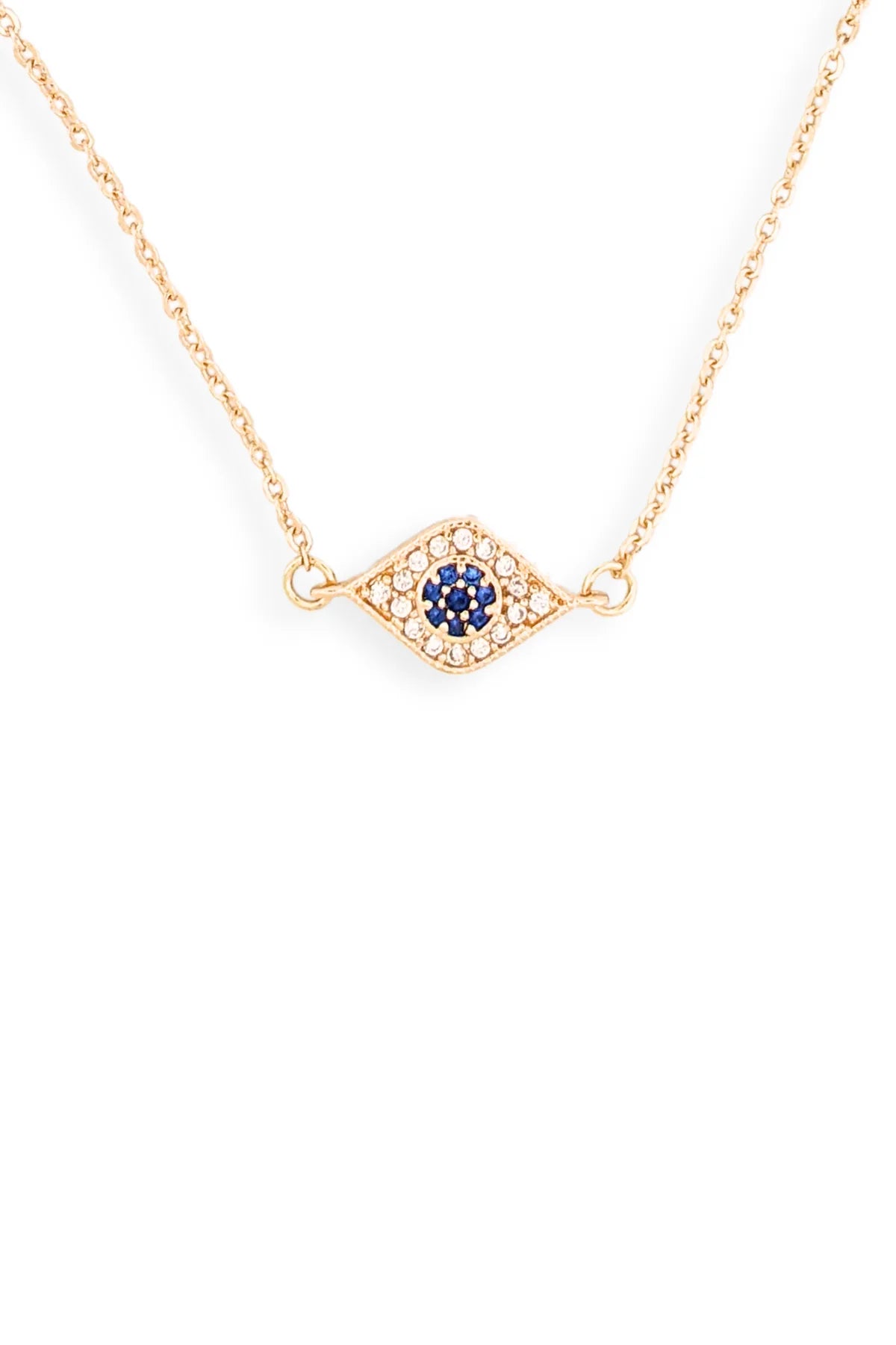 - Featuring an intricate evil eye pendant, sparkling crystals, and the perfect layering piece for a lightweight yet eye-catching look