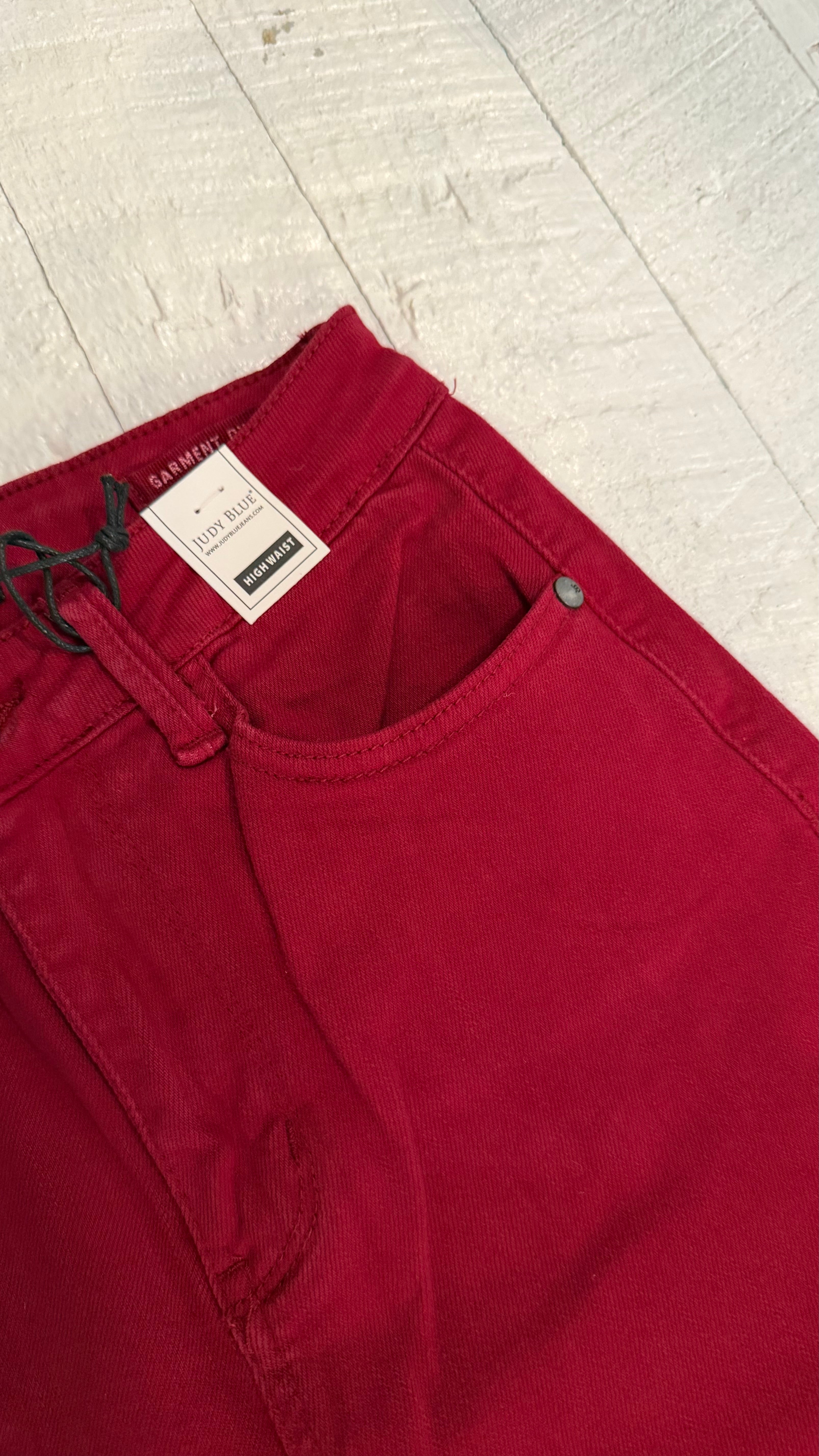 Judy Blue Hi-Waisted Cherry Cutoff Shorts
