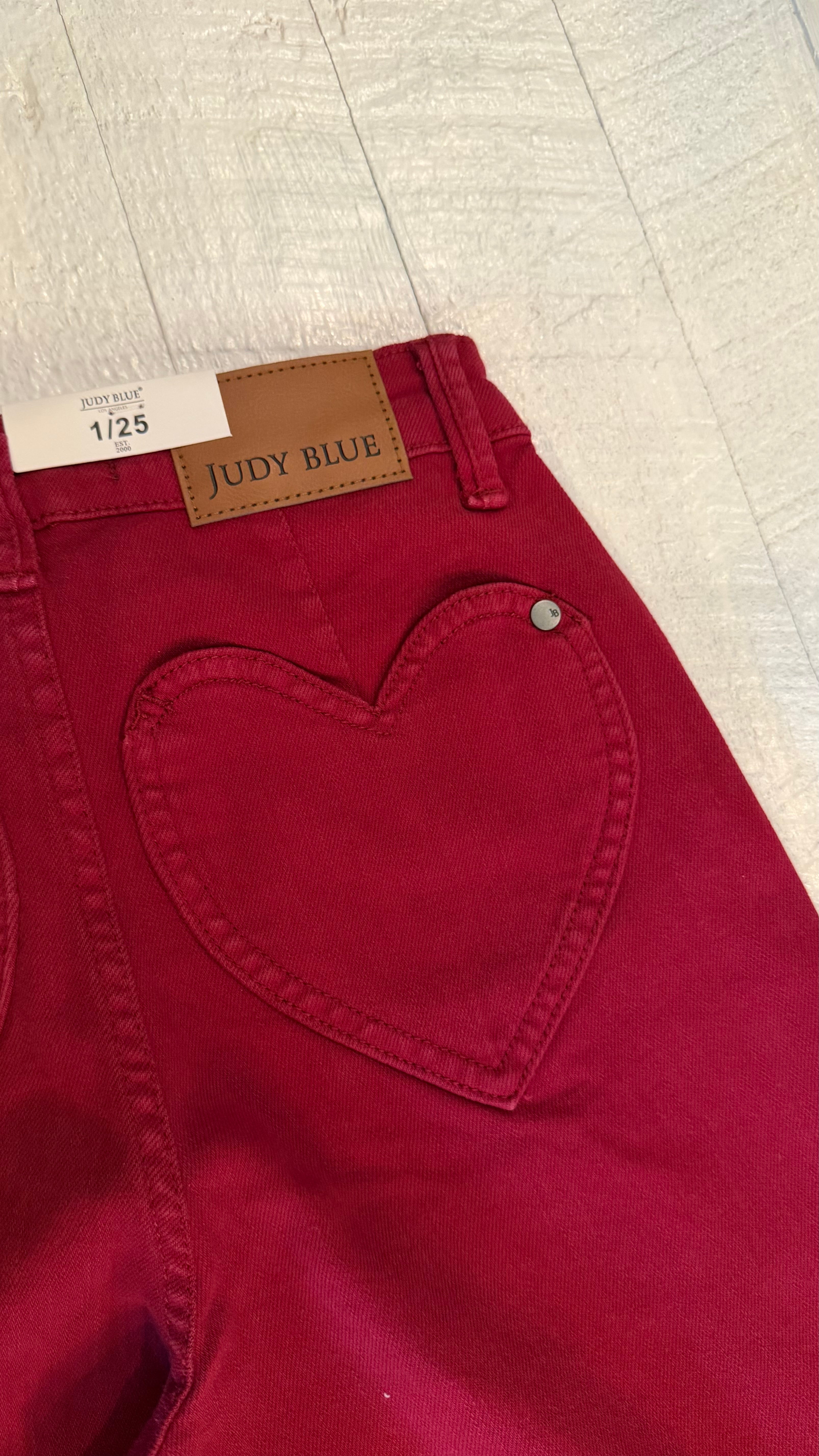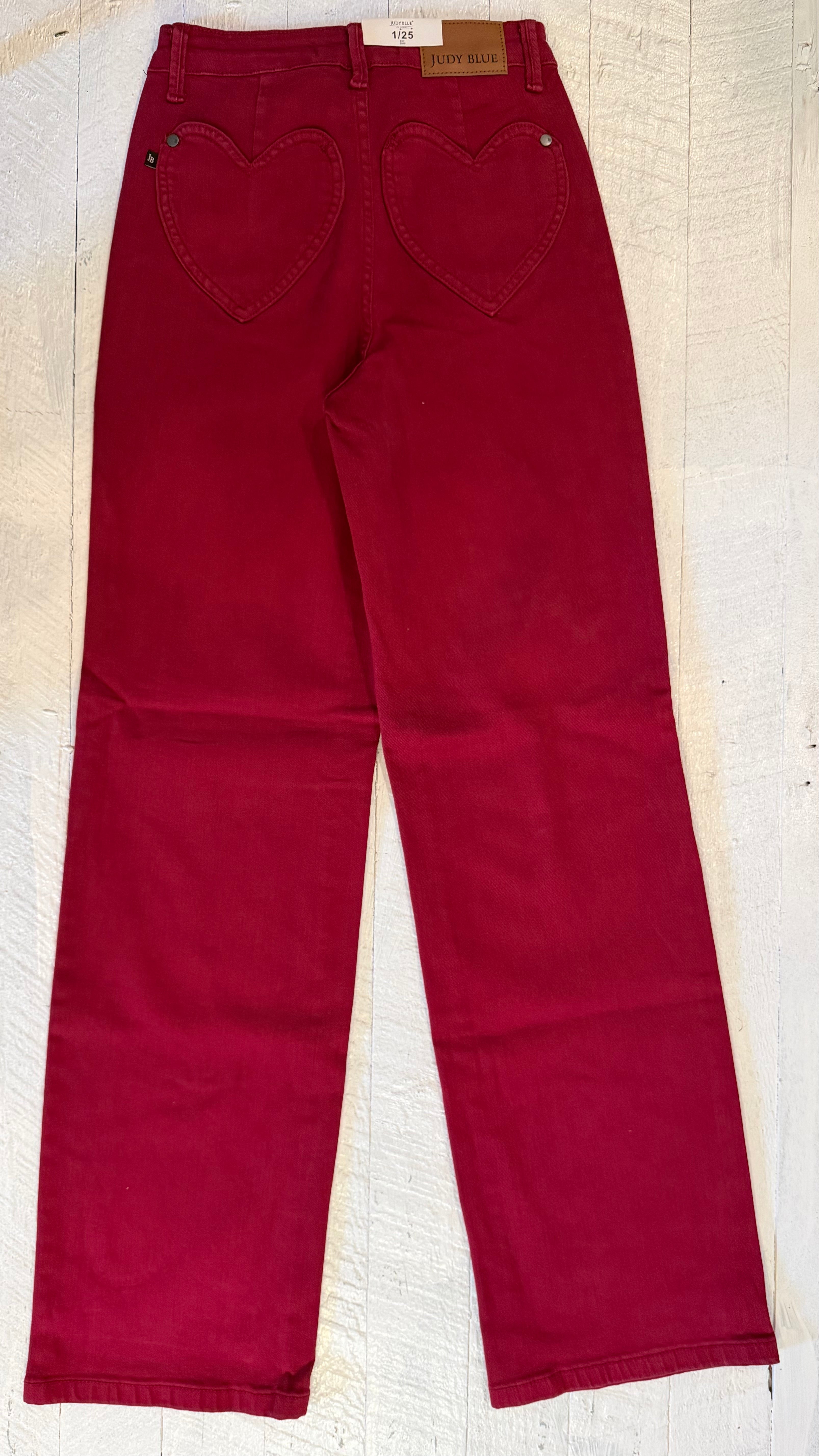 Judy Blue High Waisted Garment Dyed Heart Shaped Back Pockets 90’s Straight
