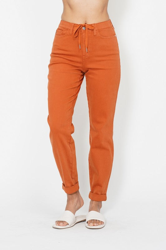 Judy Blue High Waist Garment Dyed Double Cuff Jogger | Orange