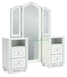 Fit for a princess. This vanity with mirror’s crisp matte white finish pairs with charming ornate beading details—perfect for your girly girl. The mirror's ambient lighting adds a touch of romance, while the bun feet and crystal knobs on the cabinet are the crowning touches to make your little one feel like royalty.