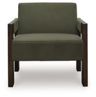This accent chair is an ultra-contemporary addition to your seating area. Warm hued wood and neutral faux leather harmonize beautifully for a luxuriously welcoming vibe. Whether you're cozying up with coffee or settling in to stream your favorite show, relaxing has never been so comfortably chic.