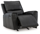 Looking for that perfect blend of comfort and style? This rocker recliner wraps you in luxury with an expertly crafted combination of leather and faux leather upholstery. Its clean lines and rich neutral tone work beautifully in contemporary spaces. With plump pillow top arms and pull tab reclining, it's your go-to spot for relaxing after a long day.
