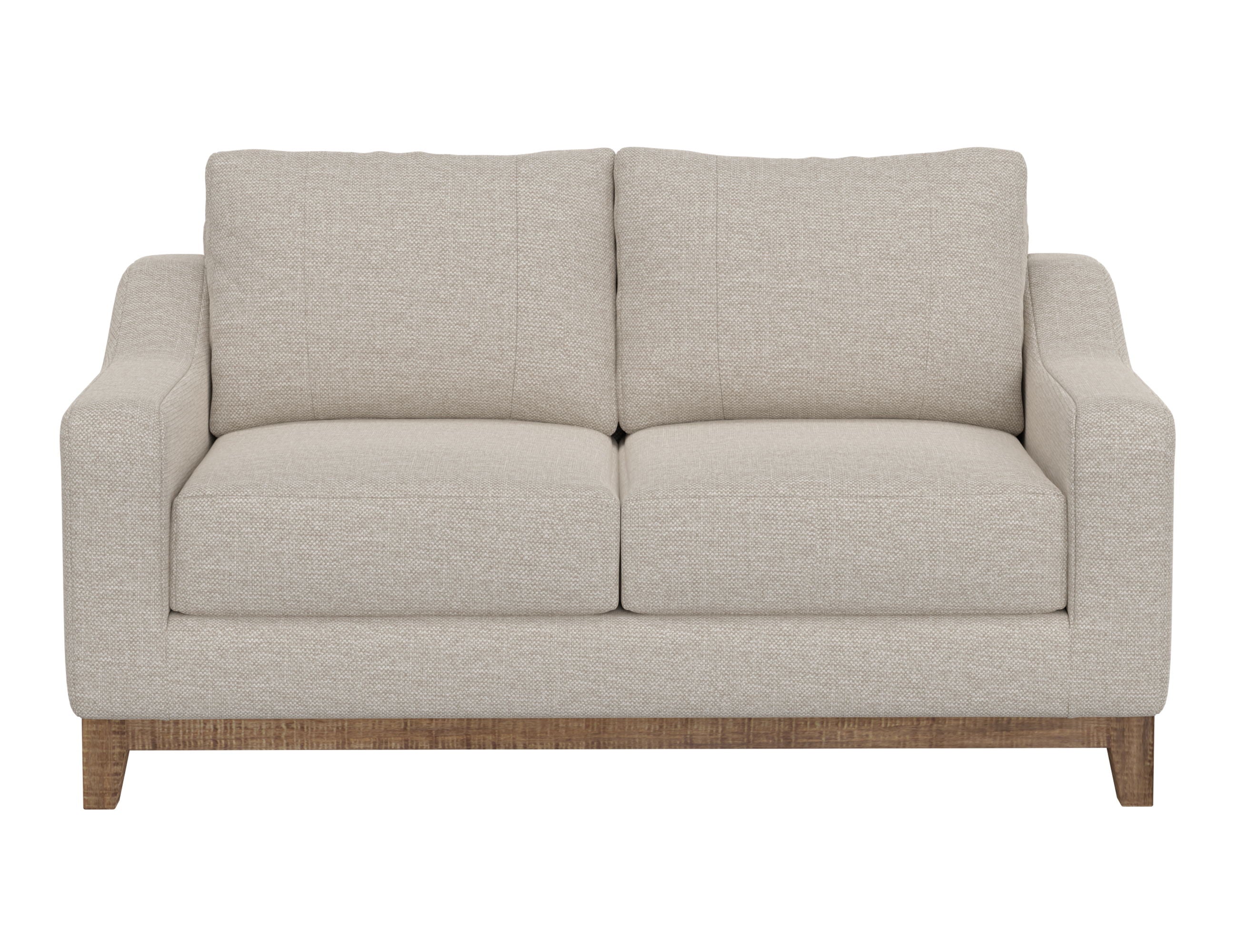 Wooden Frame & Base, Loveseat. The Olivo collection seamlessly blends clean lines with a harmonious fusion of both organic and geometric shapes, offering unparalleled comfort for your space with its mid-century modern style, marked by subtle curves on padded armrests.