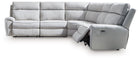 Social Pointe - 5-Piece Power Reclining Sectional - Pearl / Ash