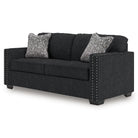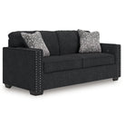 This stunning sofa leaves a lasting impression. Its cozy cushions, chic coal-colored upholstery and striking nailhead trim are a perfect blend of comfort and contemporary design. And here’s the showstopper—ambient red, white and blue LED lighting along the sofa's base. The look is simply wow.