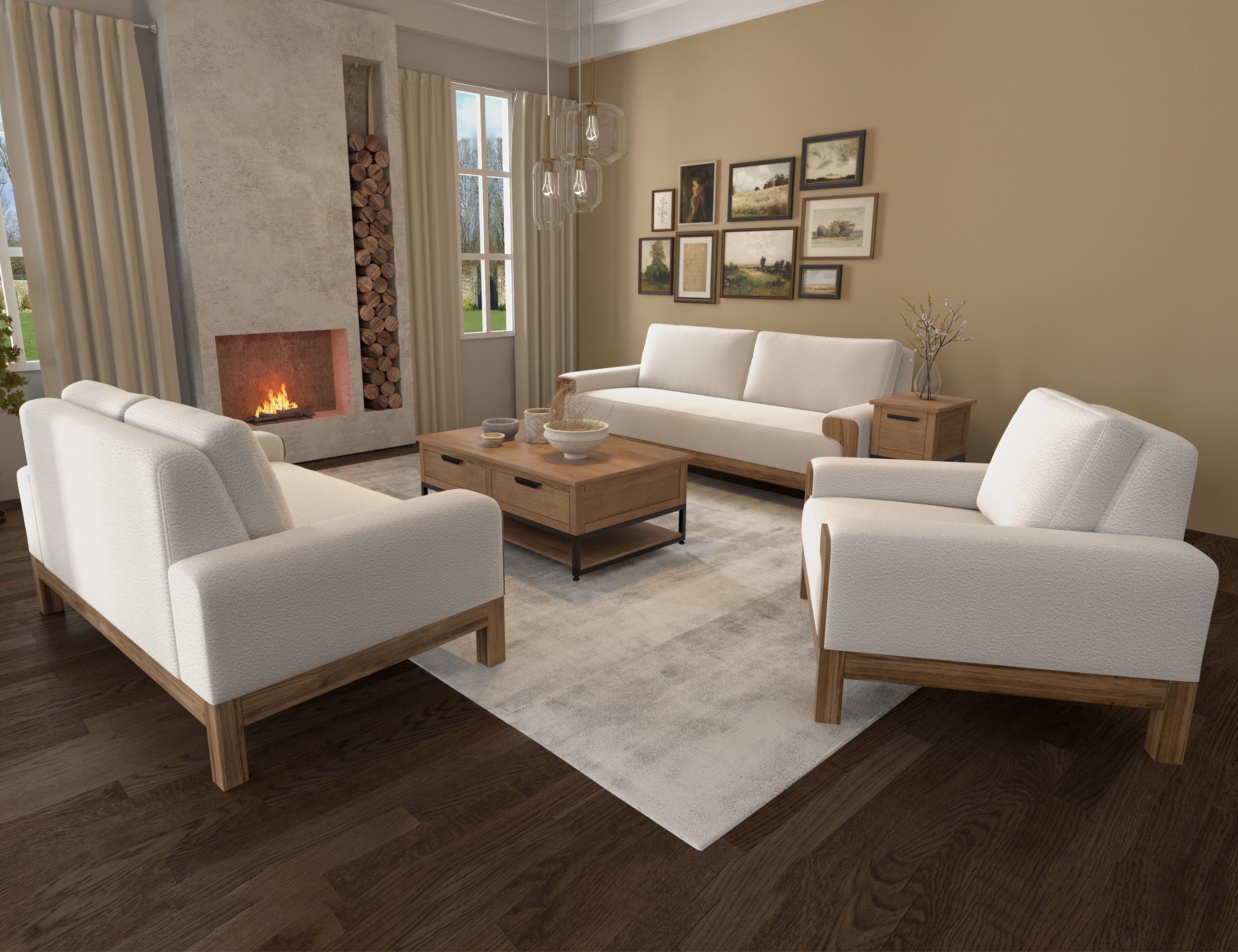 Wooden Frame & Base, Sofa. Infuse your home with modern, one-of-a-kind design and elevate your living room. Featuring exposed wood and premium-quality fabric, this collection seamlessly brings the beauty of nature right into your living space.