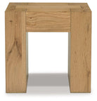 Rustic style. Refined design. This end table marries a substantial silhouette with natural materials. A glazed light finish enhances the unique character of its oak veneer. Loaded with both homespun charm and contemporary flair, this table effortlessly elevates casual aesthetics.