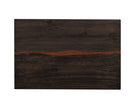 - The table's top is enhanced with epoxy resin infused with copper mineral flakes.