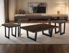 Cocktail Table DeLux. The Raramuri occasional table set is a high-quality addition to any living room, crafted from sustainable mango wood. Each table features a unique natural live-edge top. The tops of both the cocktail and sofa tables are infused with epoxy resin and copper mineral flakes, enhancing their durability and visual appeal. This occasional table set highlights the natural beauty and tonal variations of mango wood. The metal base offers a stable and long-lasting foundation, making these tables ideal for everyday use.