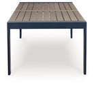 Easy-breezy beauty, made to withstand the elements. This outdoor dining table makes a serene statement on your deck or patio with its soothing shade of blue and contrasting wood-look top. And with durable materials providing added longevity, this table is a smartly-stylish addition to your outdoor oasis.