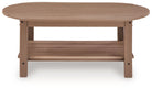 Natural neutrals are all the rage. Embrace the style trend with the Cliffs Beach outdoor table. Crafted of MEGA-TUFF® HDPE material, this piece combines the exceptional durability and weather resistance you need with the wood look you love. Designed to shed rainwater, the table's slatted top with gently rounded corners provides exceptional form and function. It's the perfect spot for al fresco essentials like a snack tray, drinks or books.