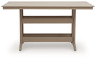 This outdoor counter height dining table is the perfect companion for alfresco living. Its contemporary, neutral design creates an effortlessly chic focal point for any deck or patio. Built with a smart slatted construction, it sheds rainwater while delivering exceptional durability that stands up to the elements year after year.