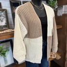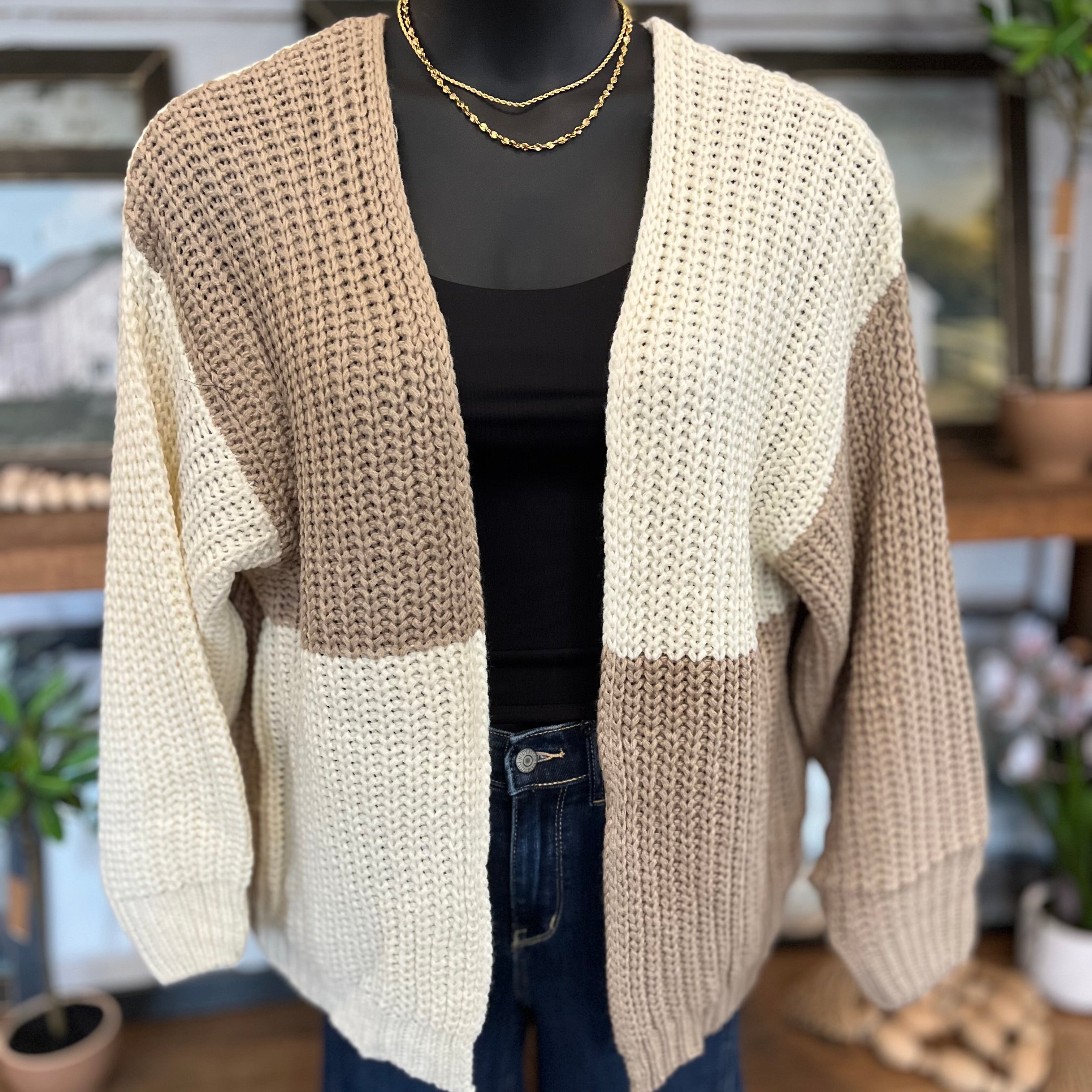 Color Block Long Sleeve Open Cardigan | Mocha Mousse