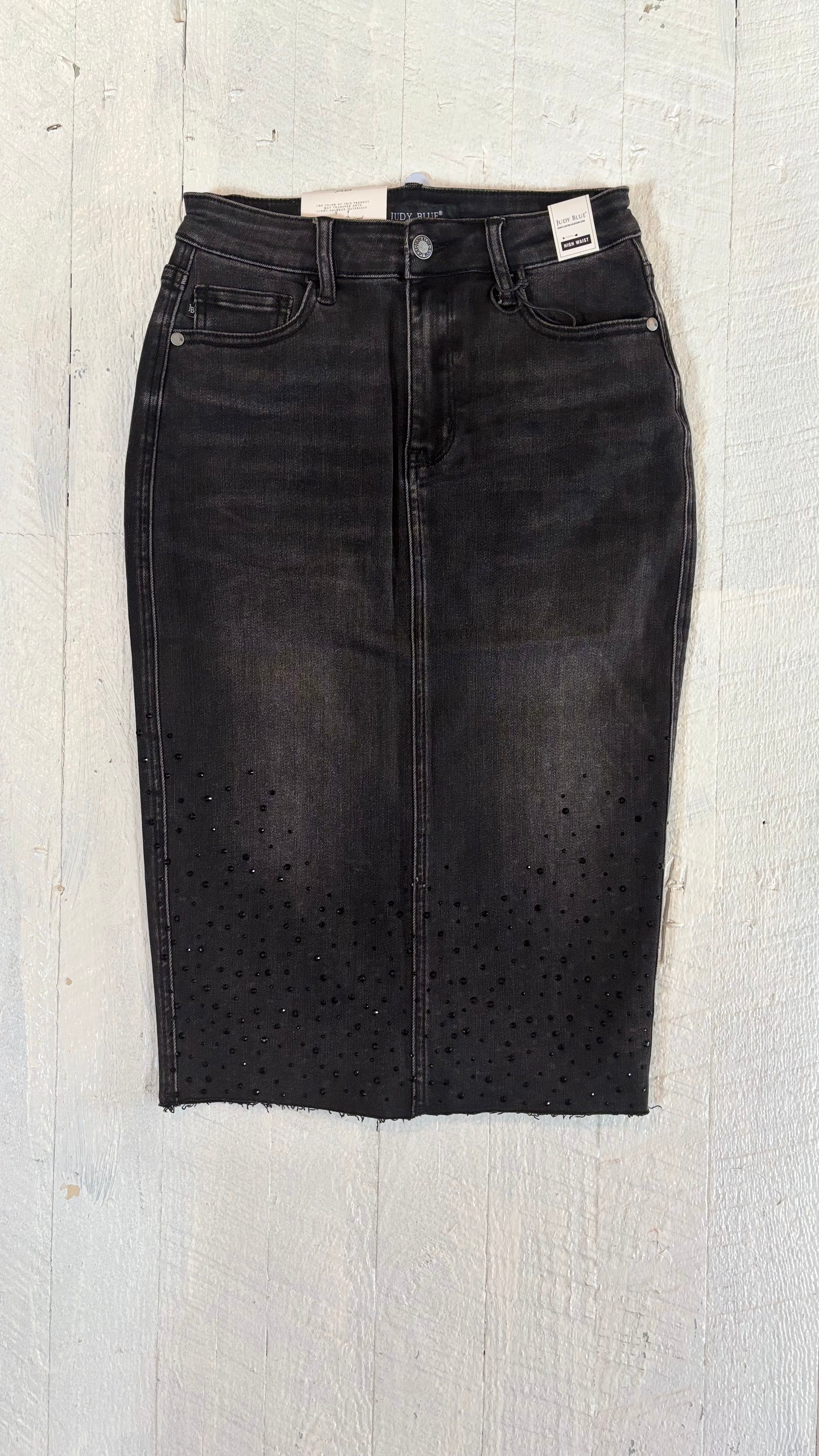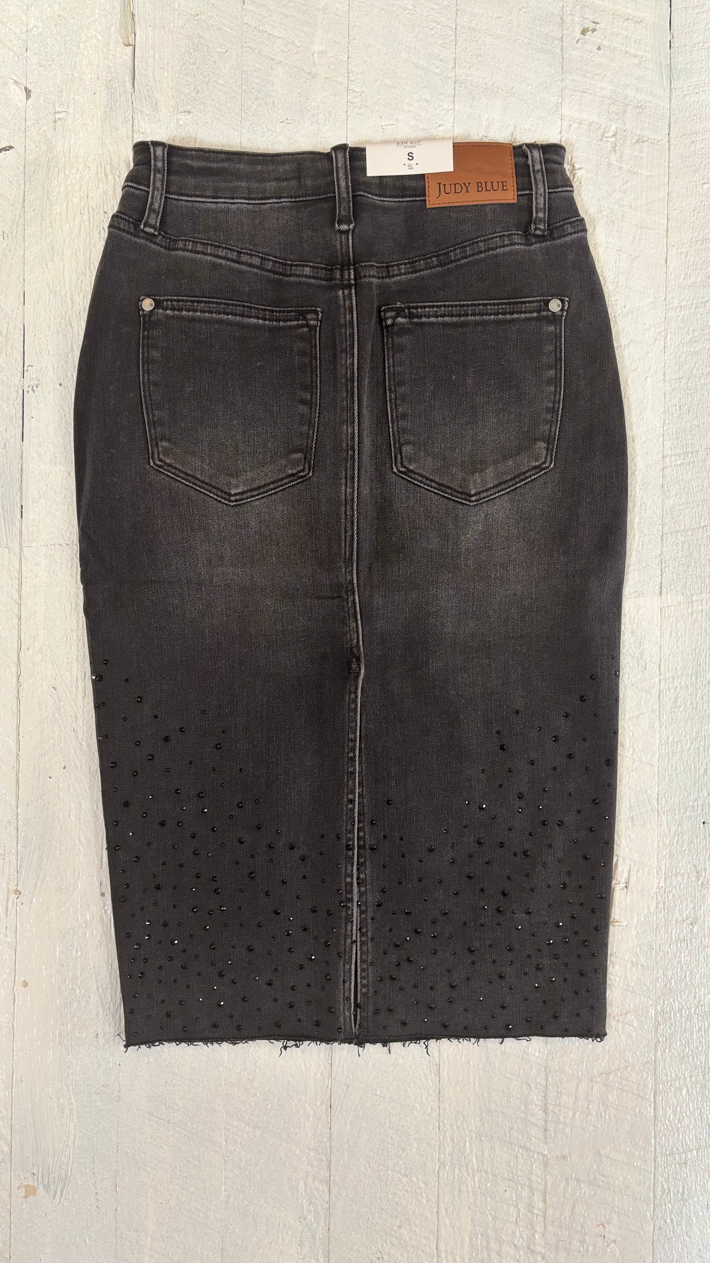 Judy Blue High-Waisted Rhinestone Embellished Mid Length Skirt