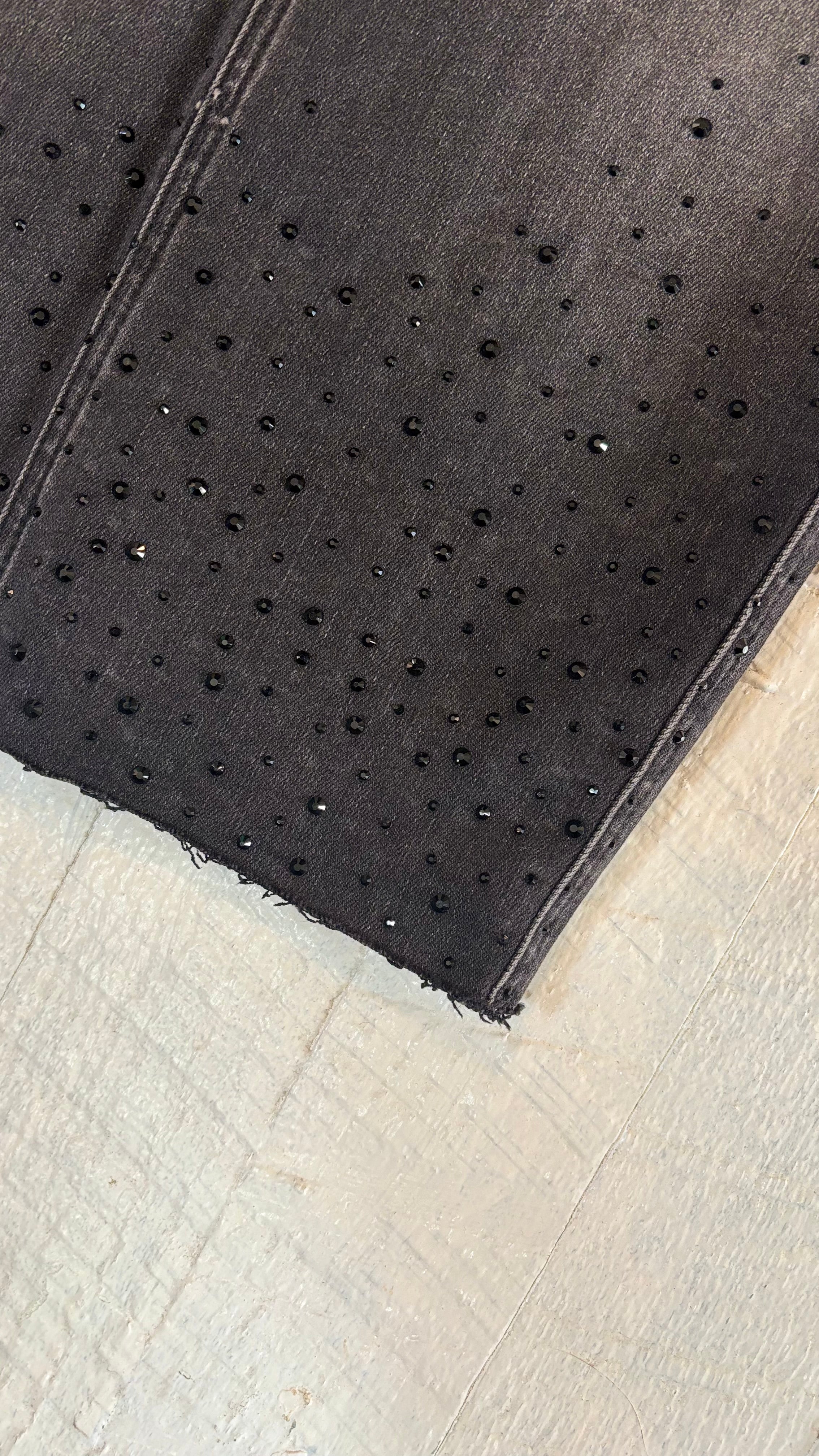 - Experience elegance and glamour with our High Waisted Rhinestone Embellished Mid Length Skirt