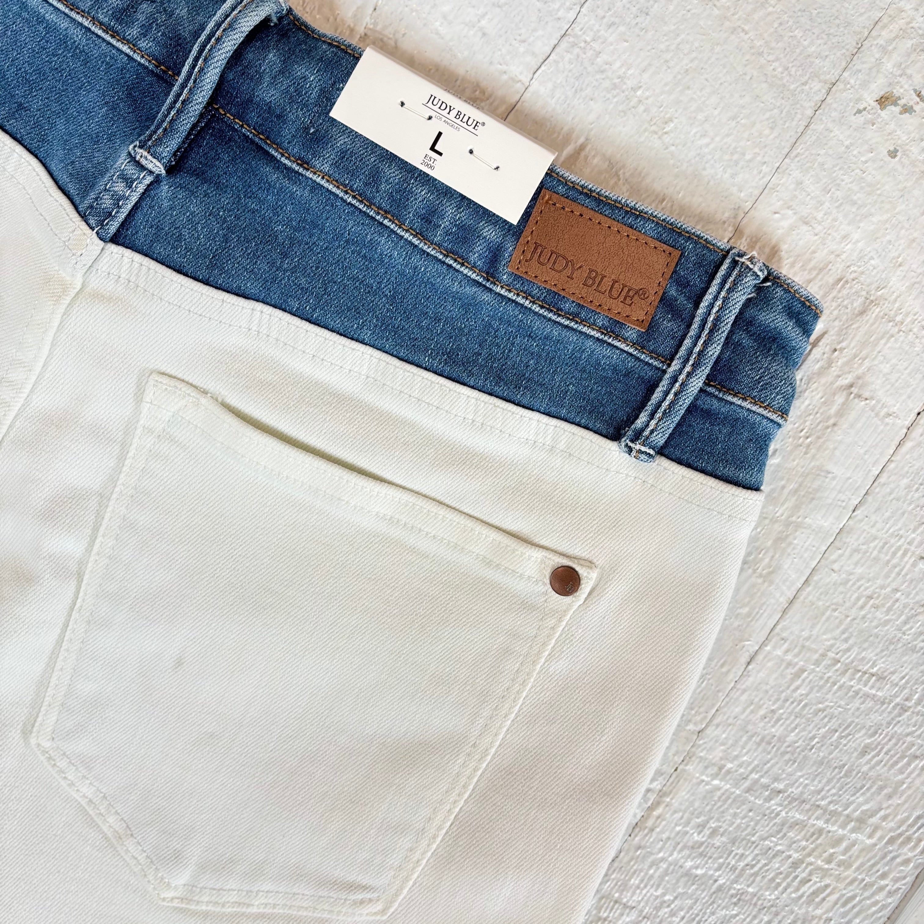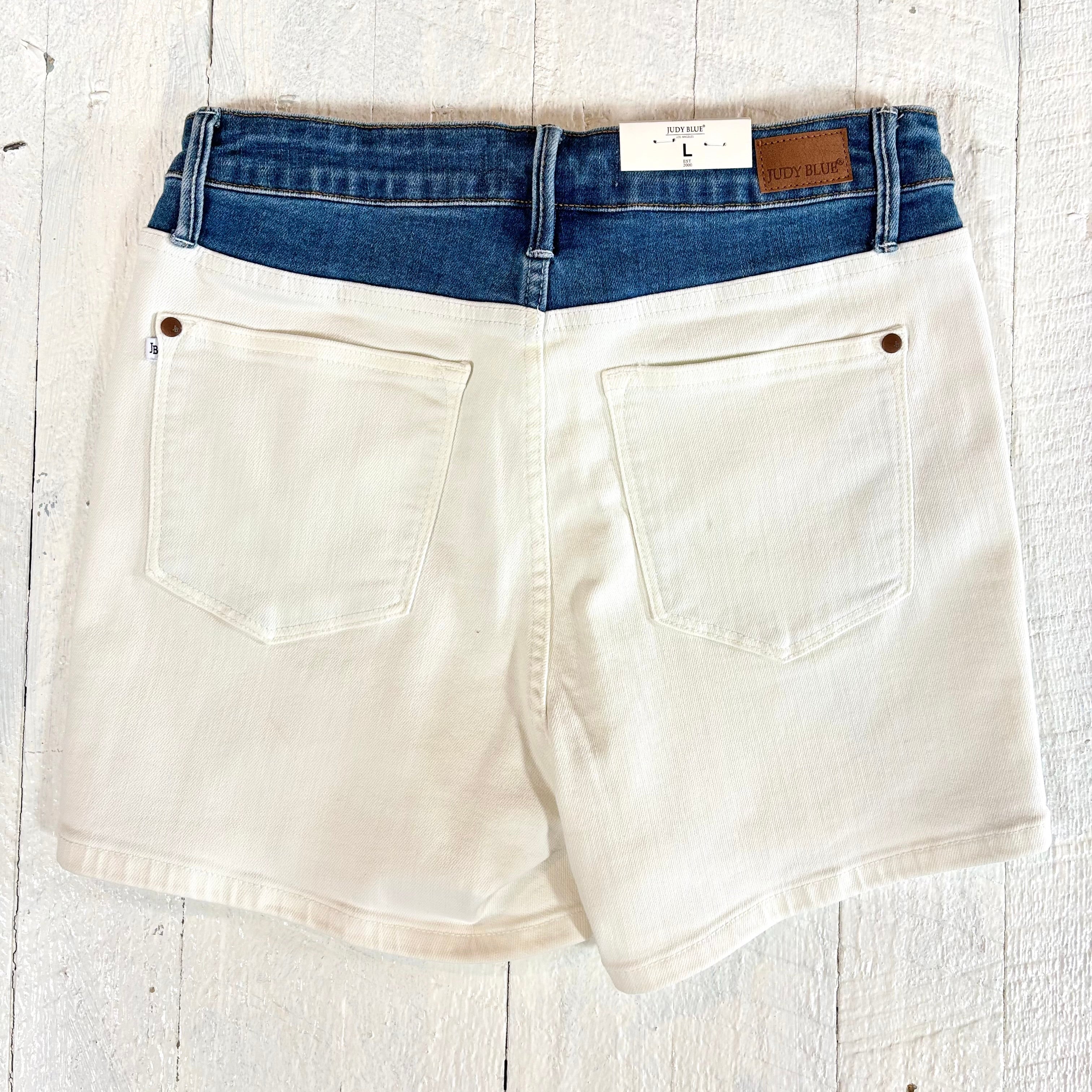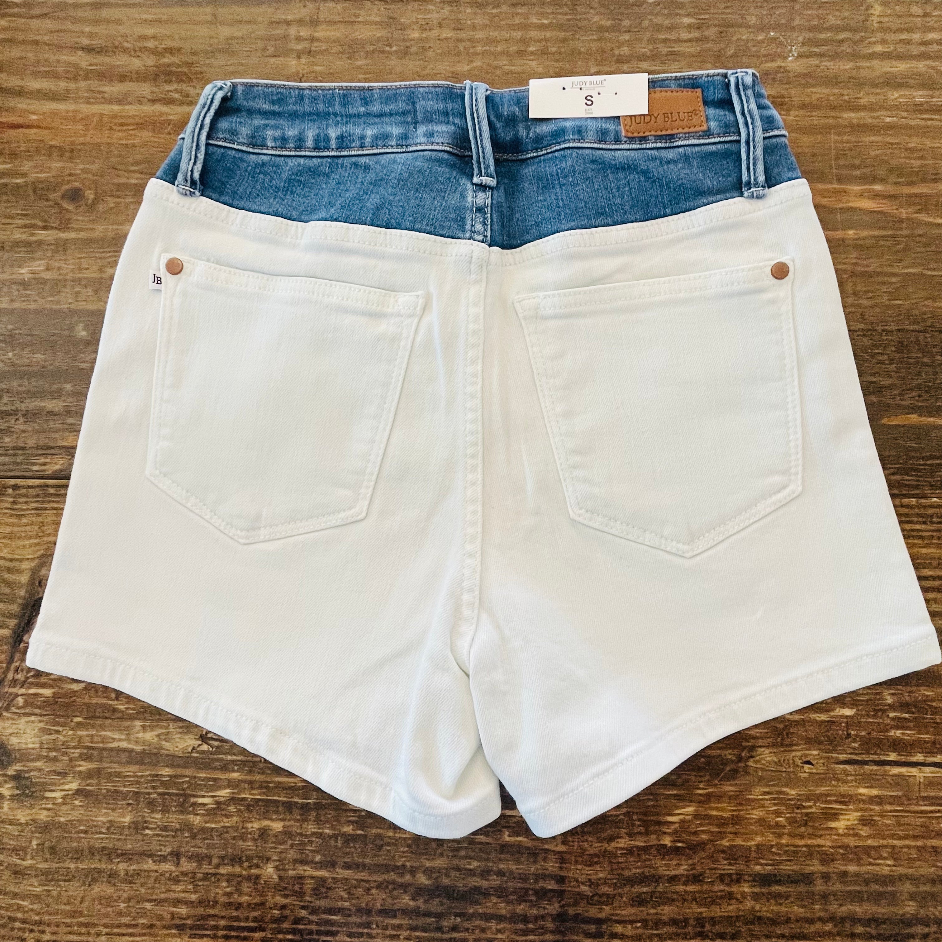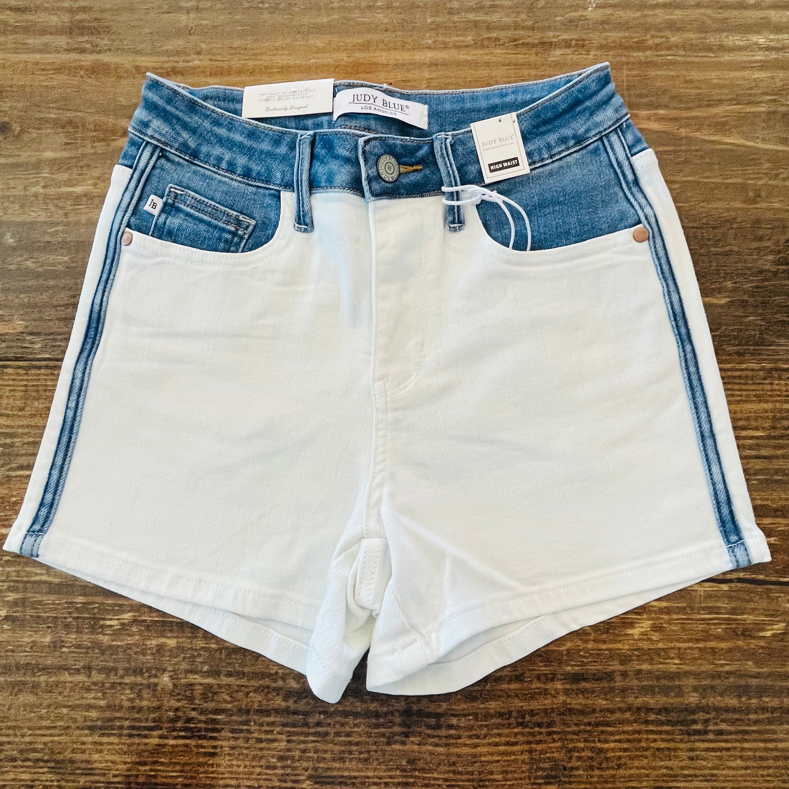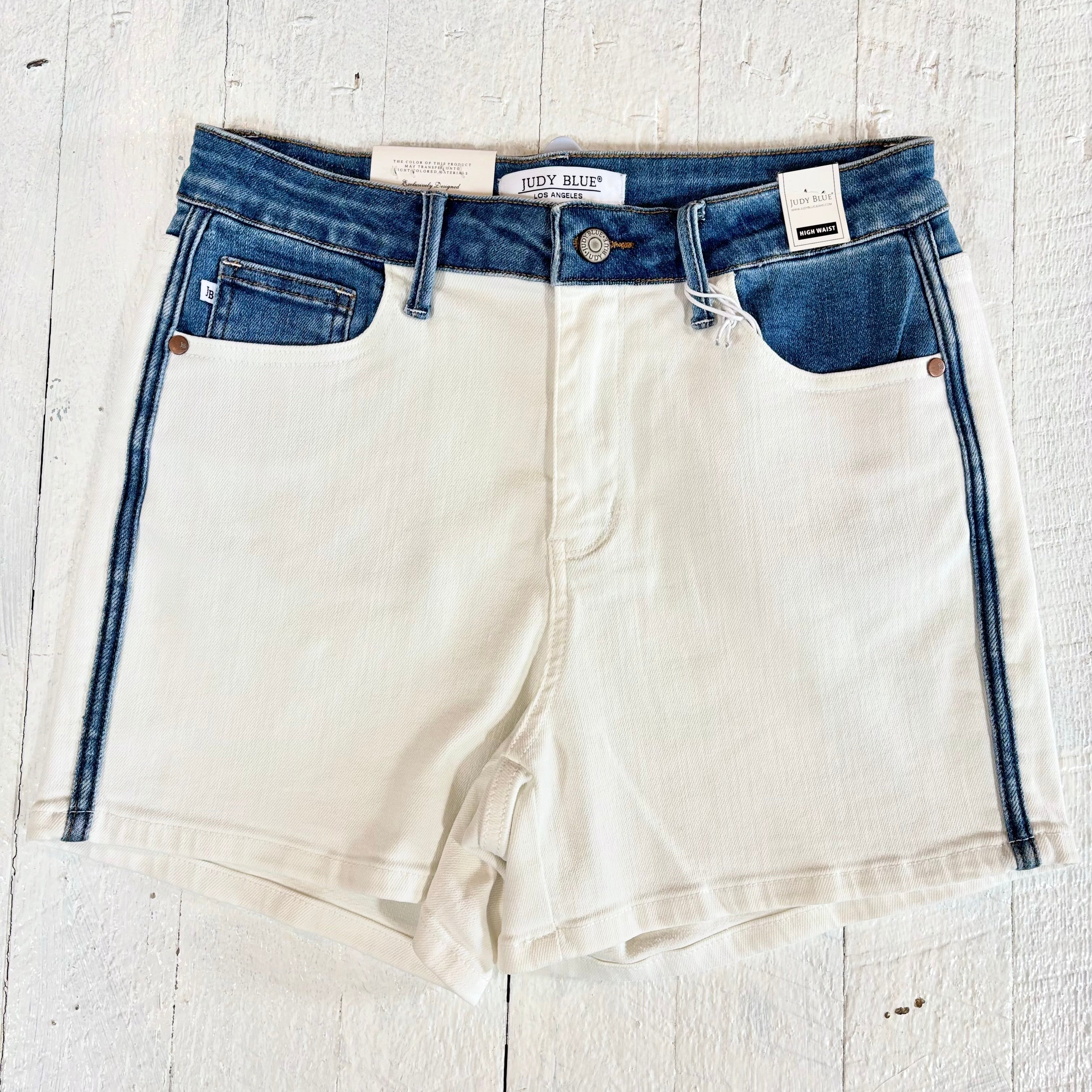 - Step into style with these High Waisted Ecru/Medium Shorts