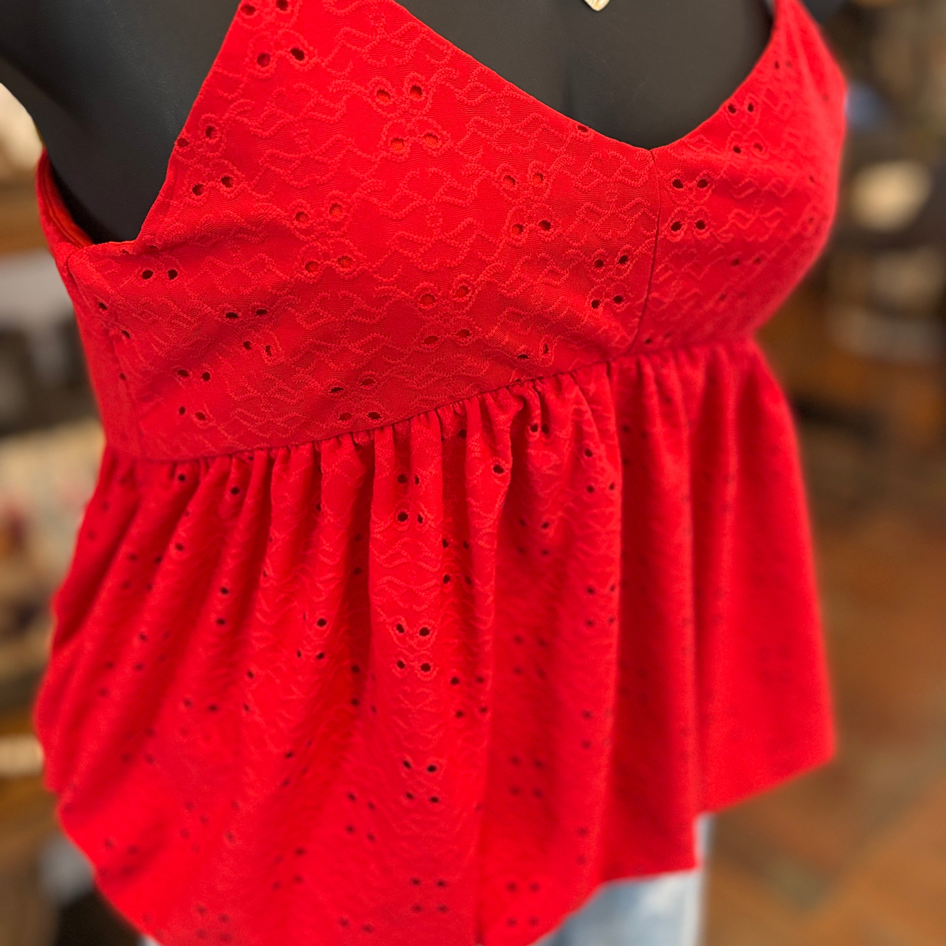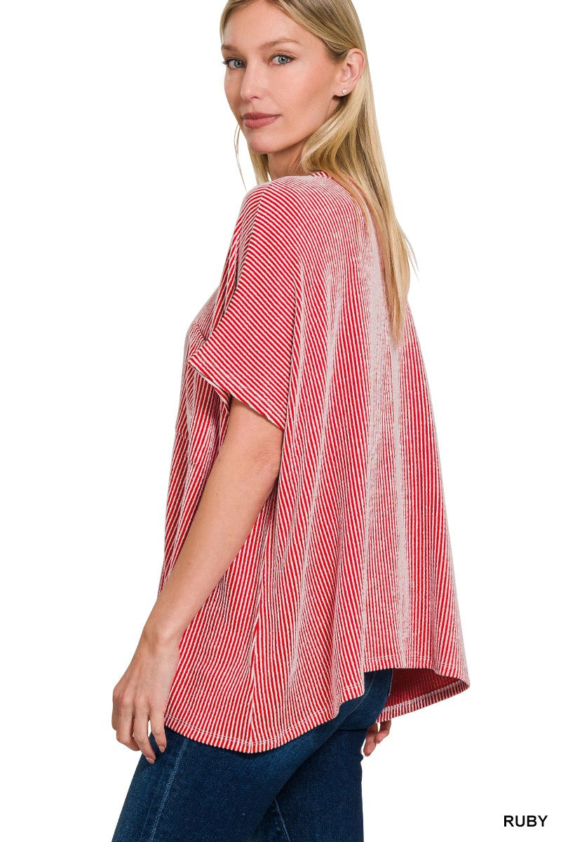 Mistletoe Embroidered Mineral Washed Knit Top | Washed Red