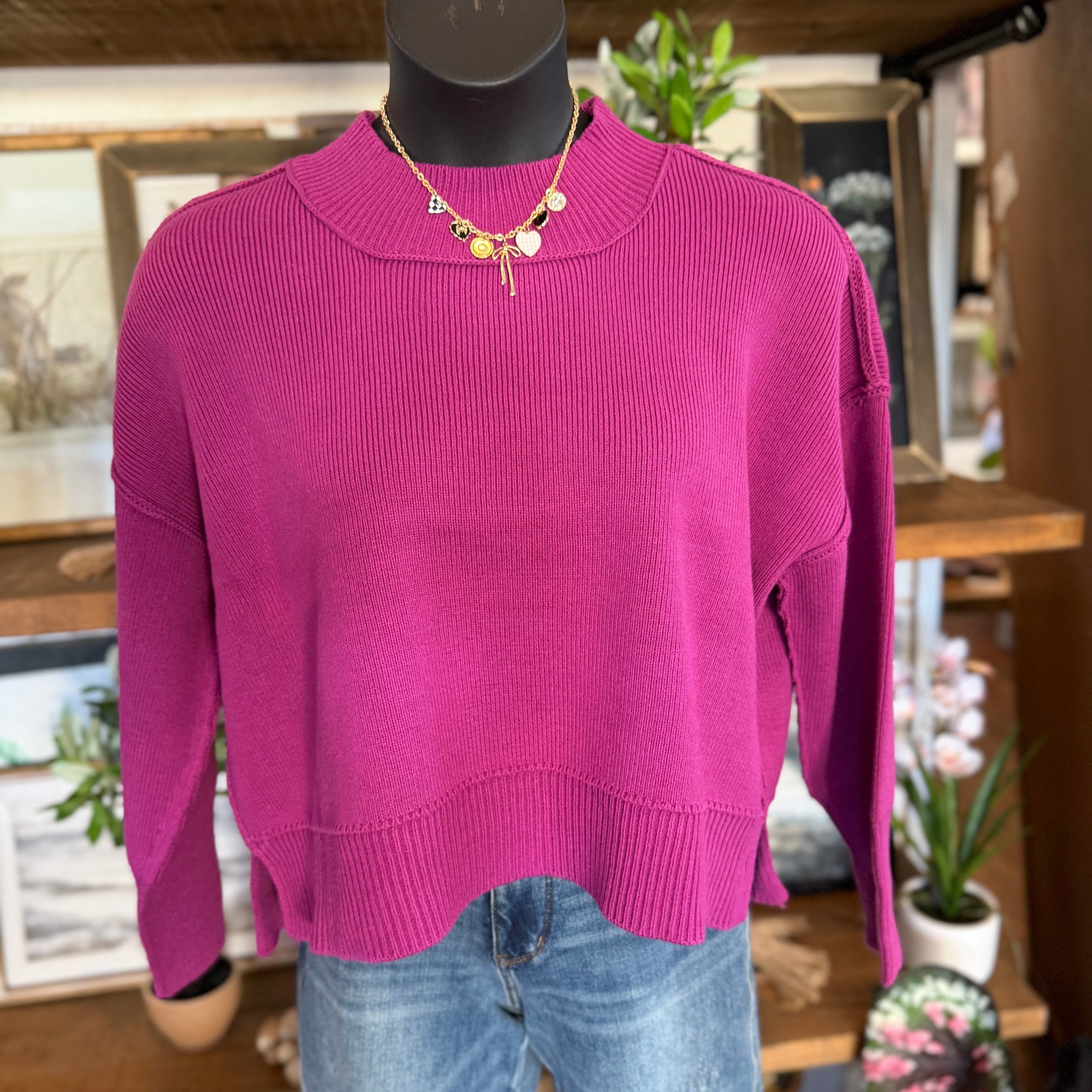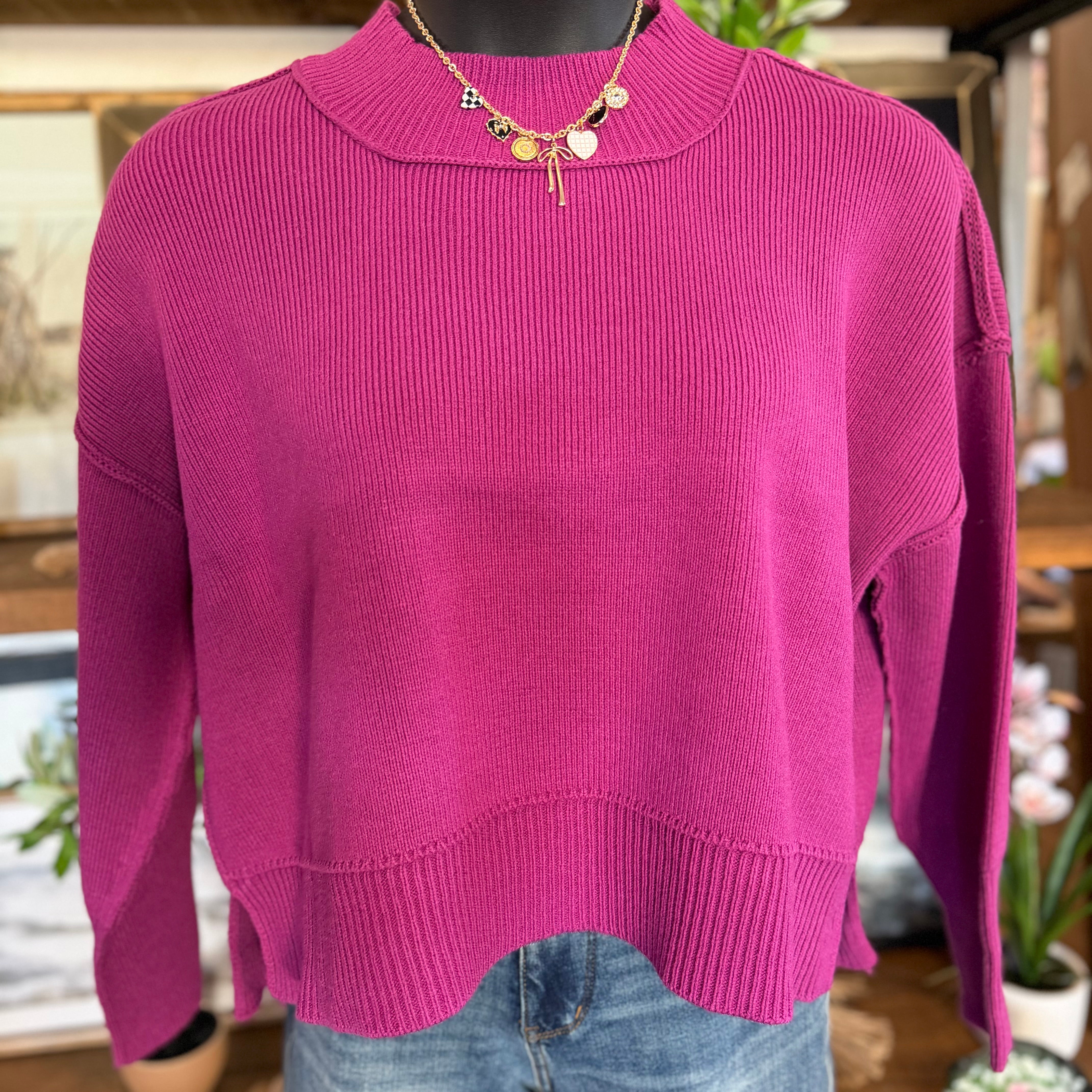 Wide Neck Band Drop Shoulder Sweater | Lt Plum
