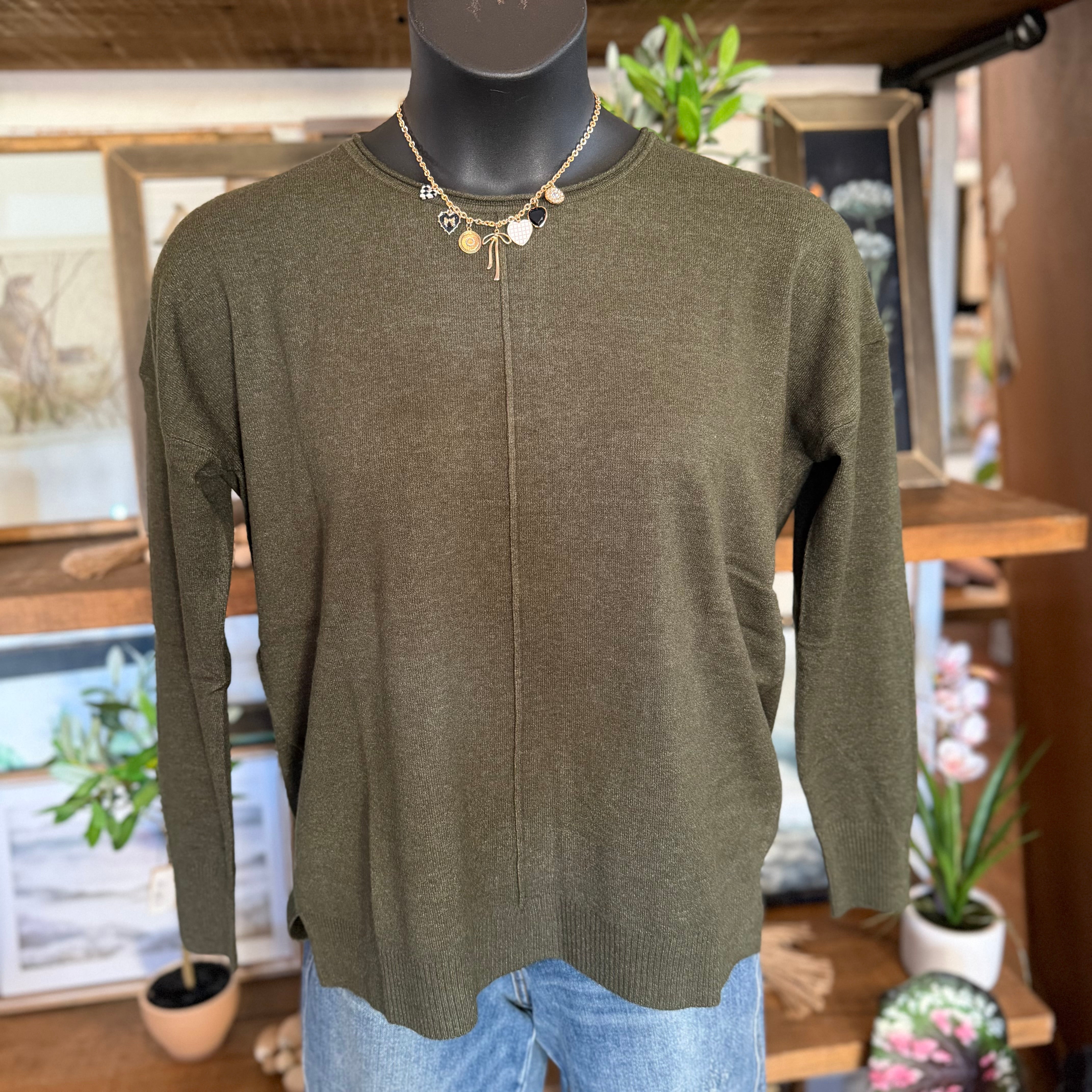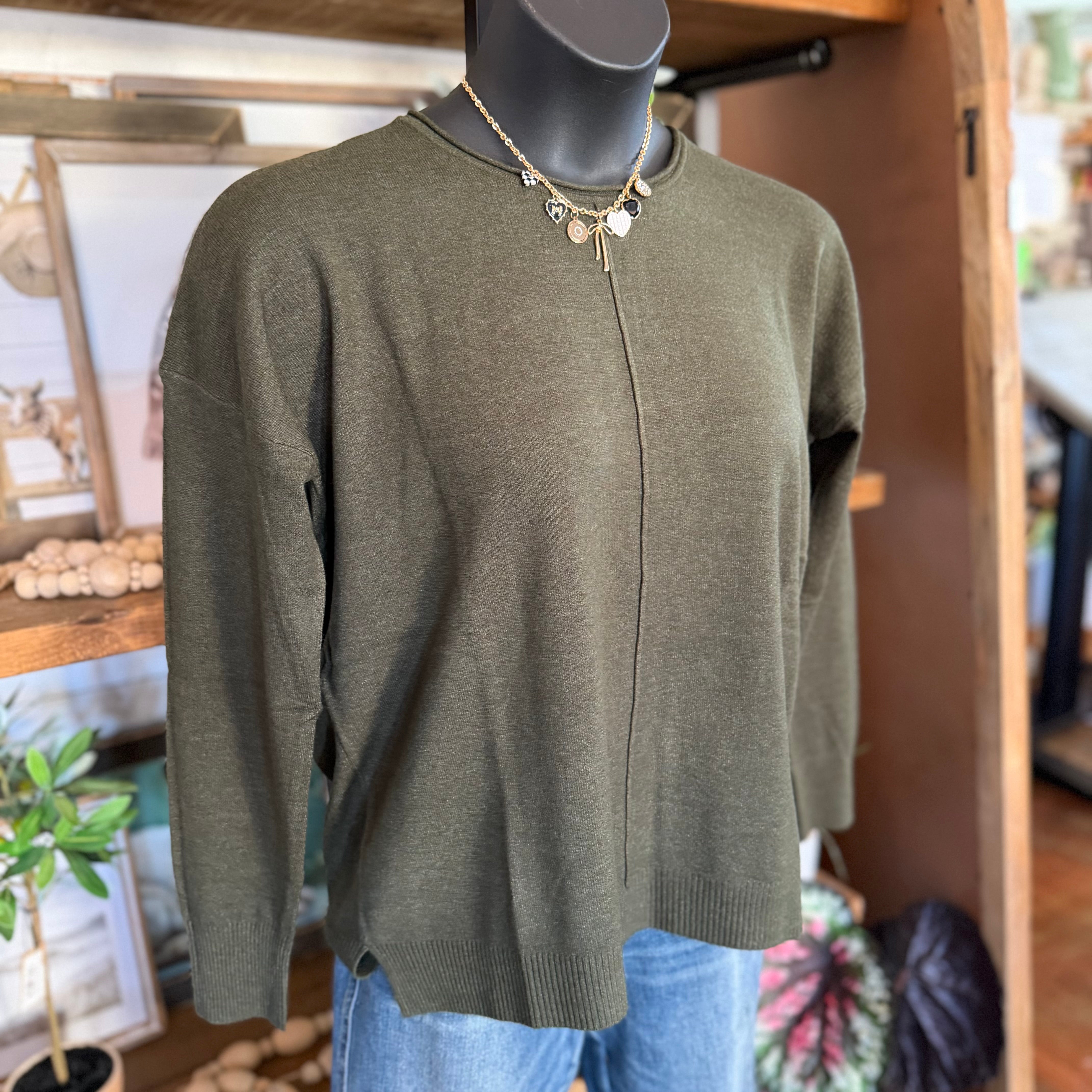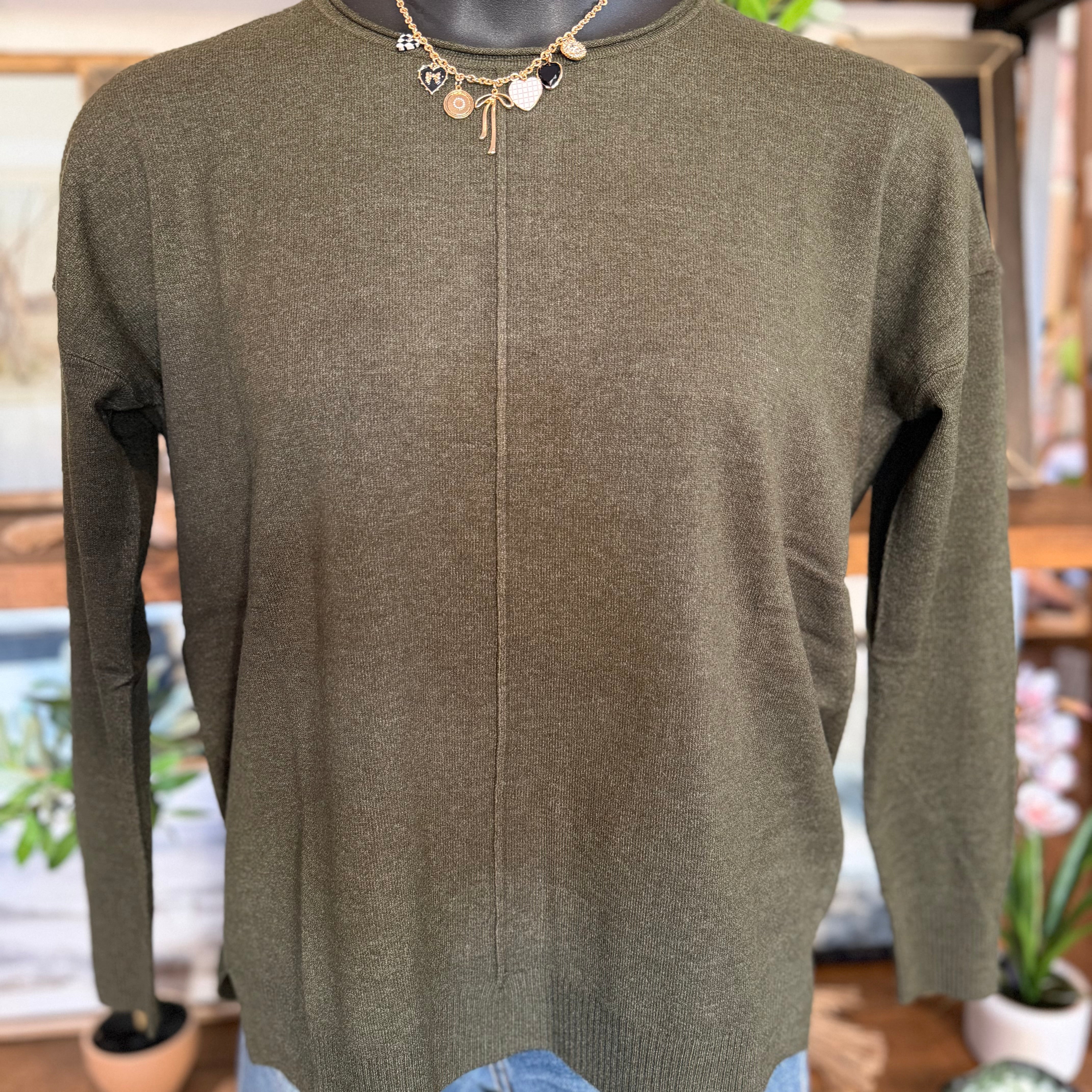 Viscose Front Seam Round-neck Sweater | H Dk Olive
