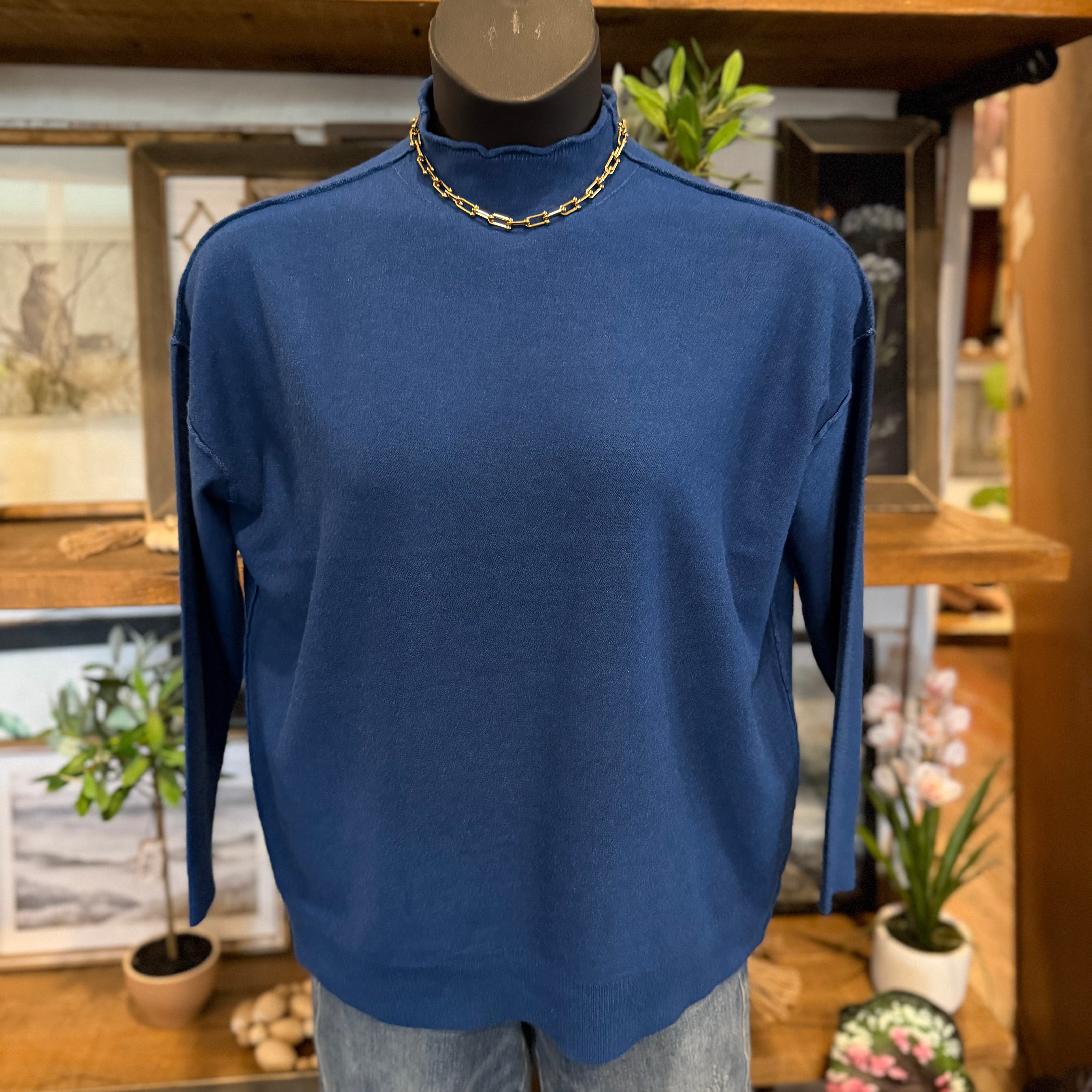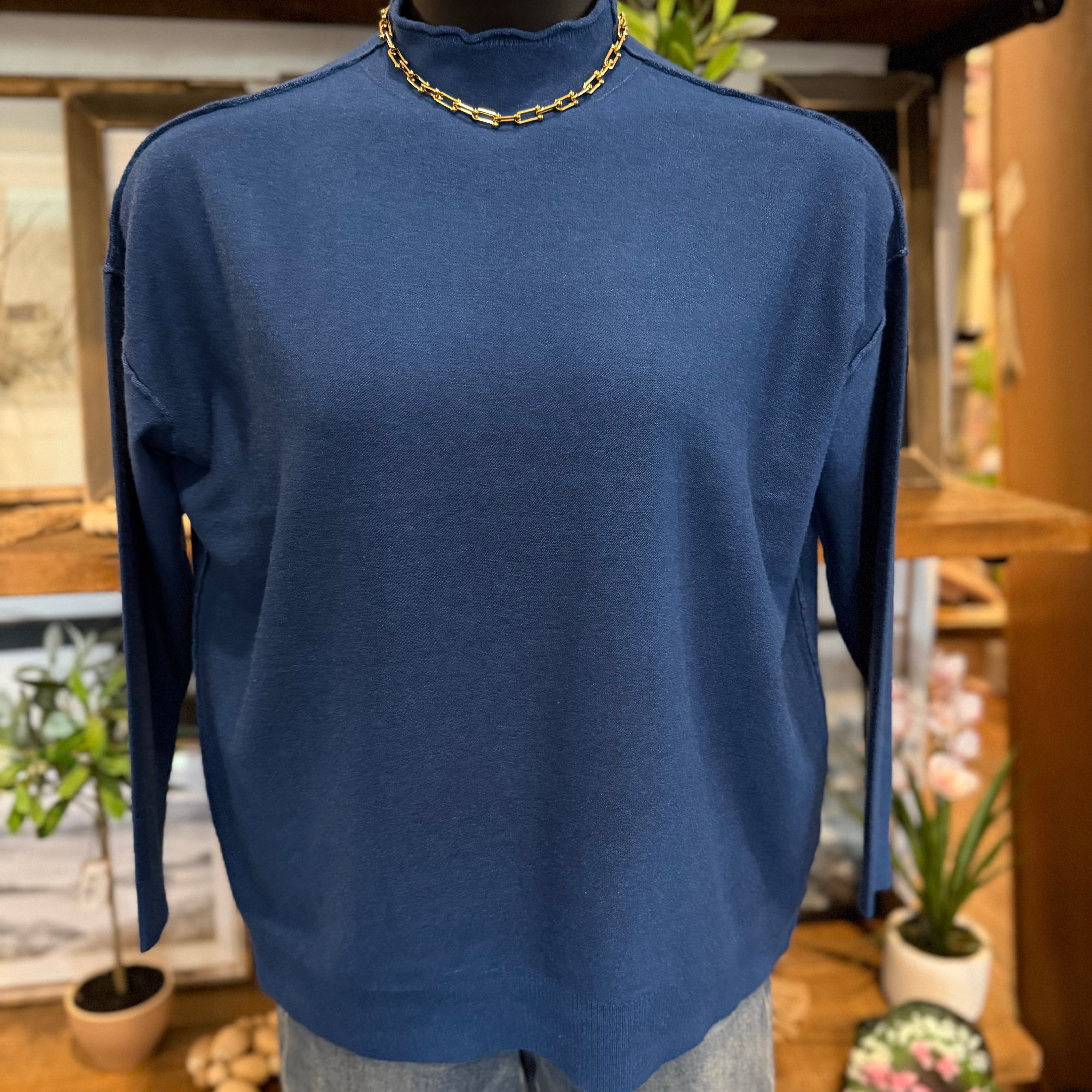Viscose Mock Neck Exposed Seam Sweater | Classic Blue