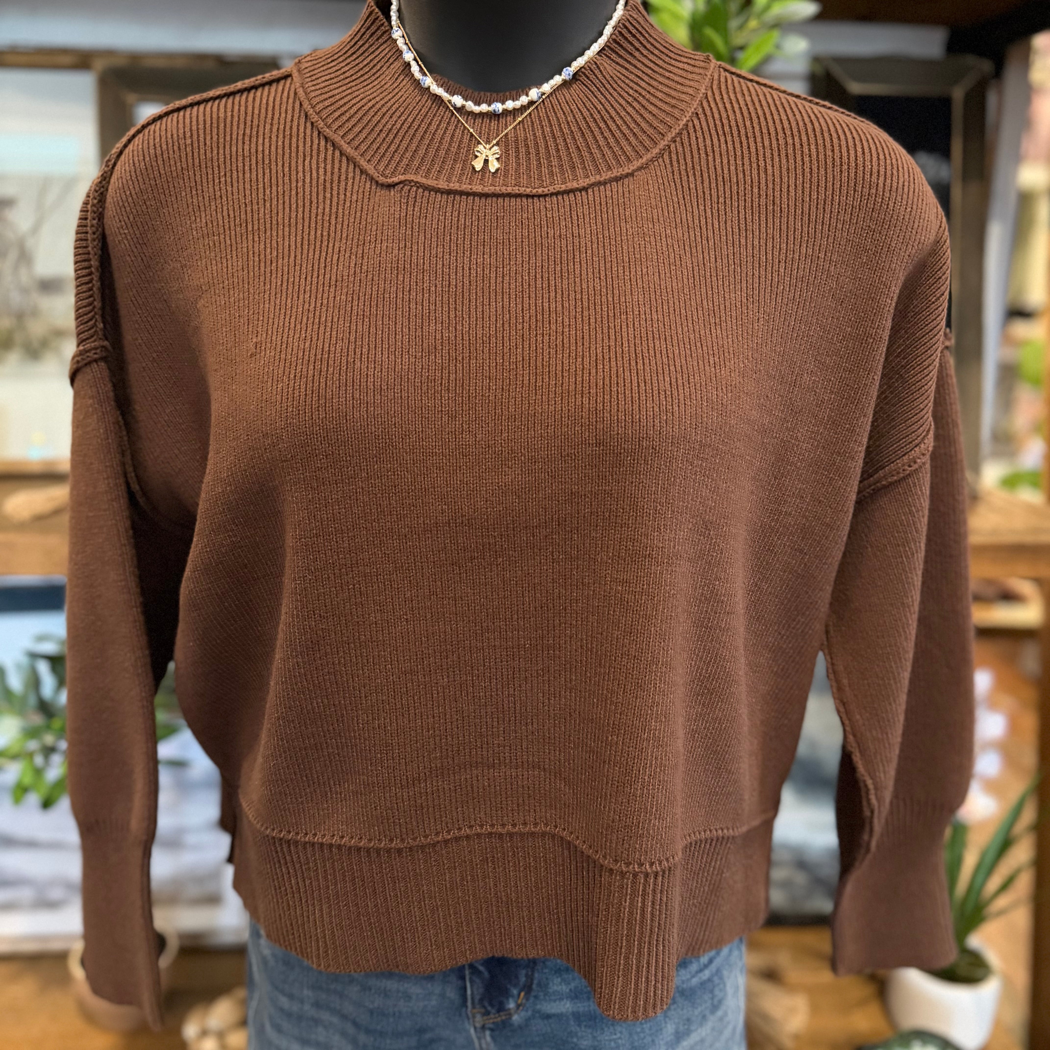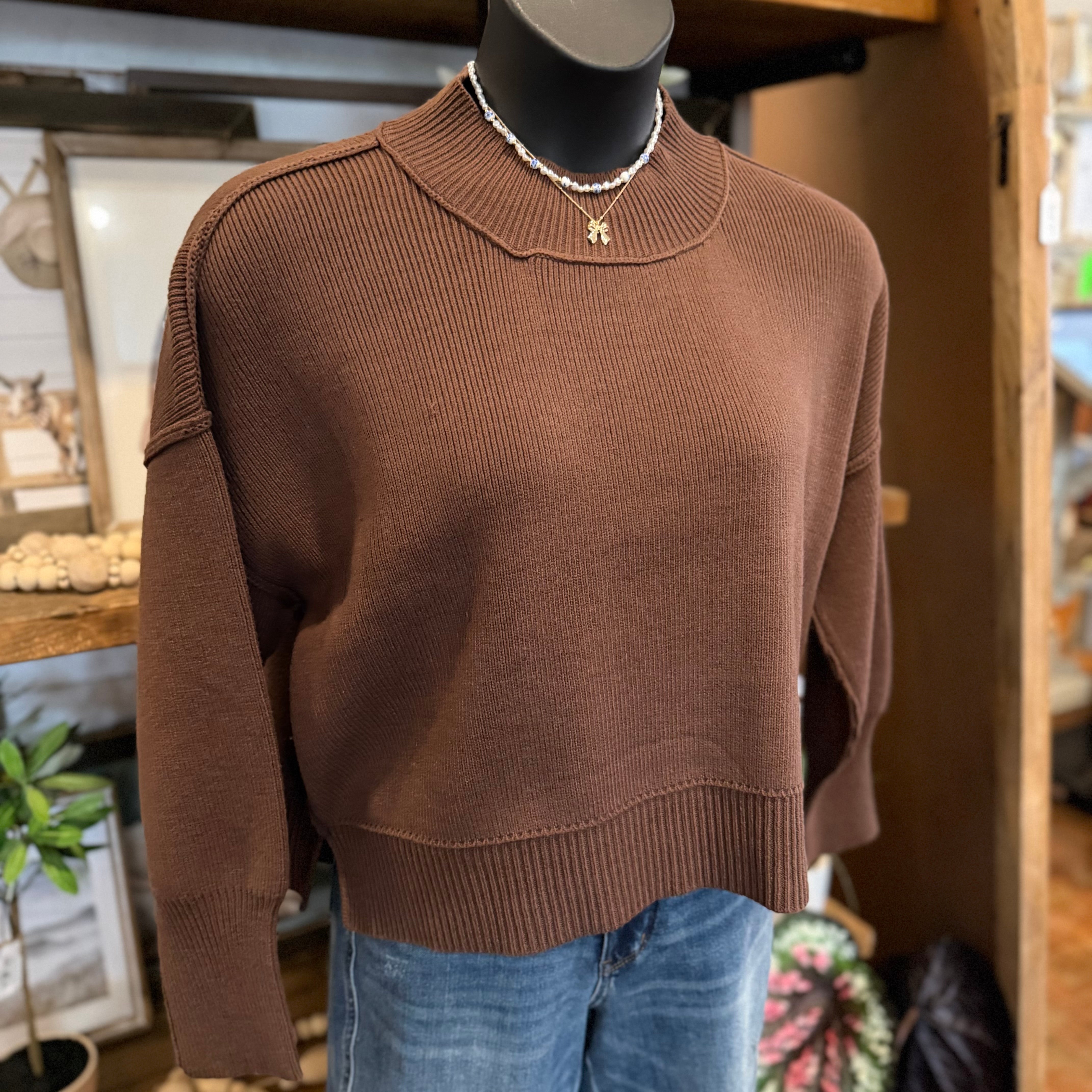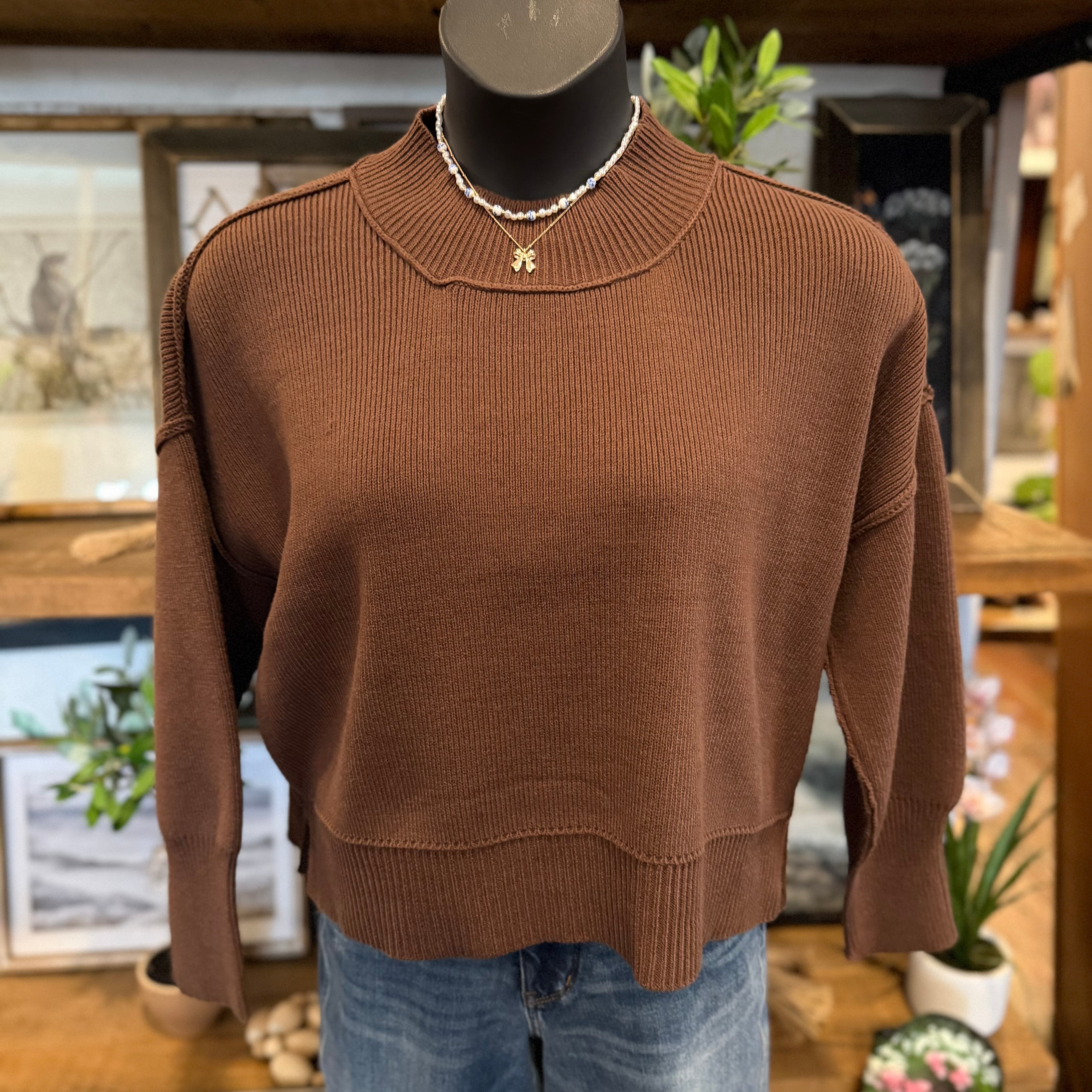 Mock Neck Short Sleeve Sweater | Brown
