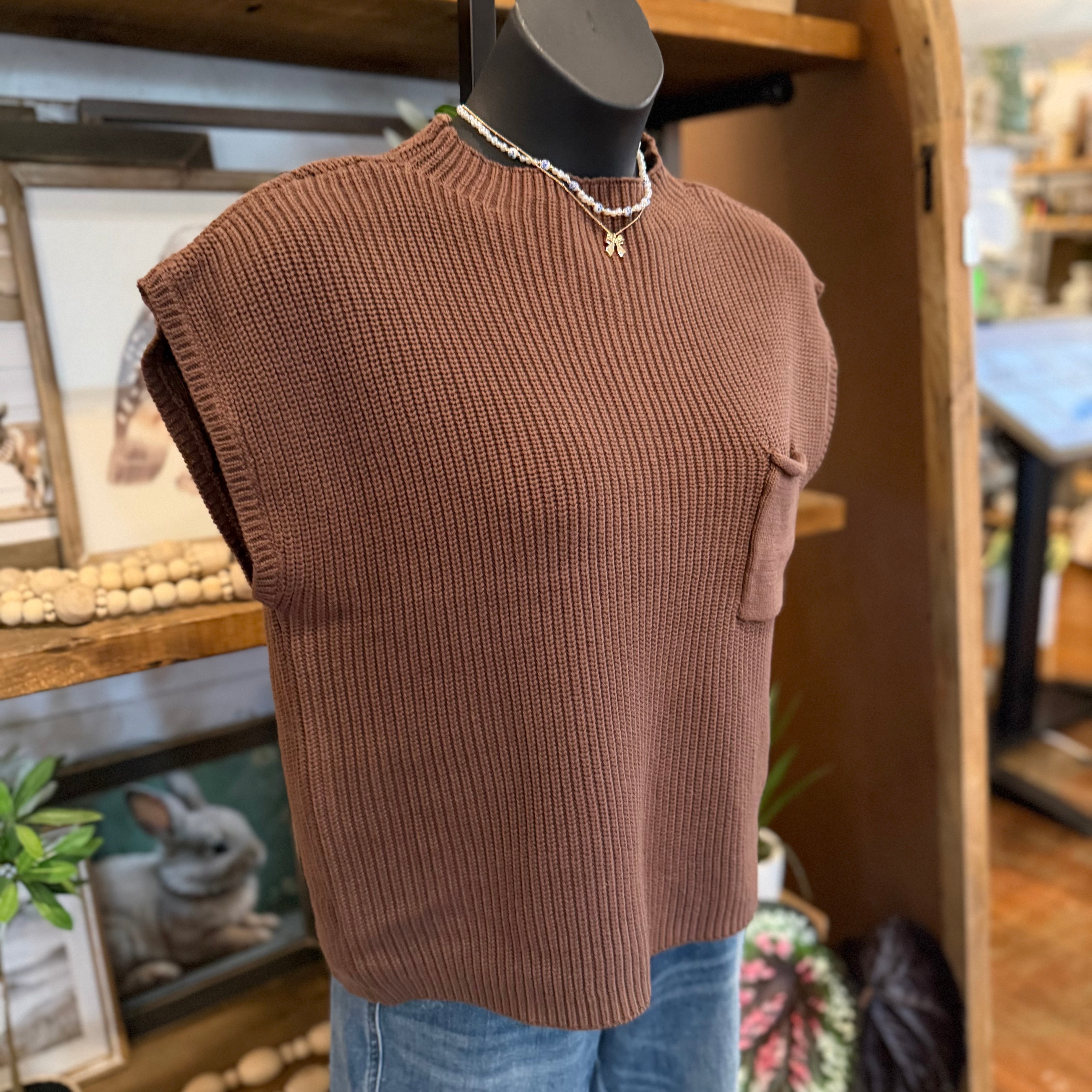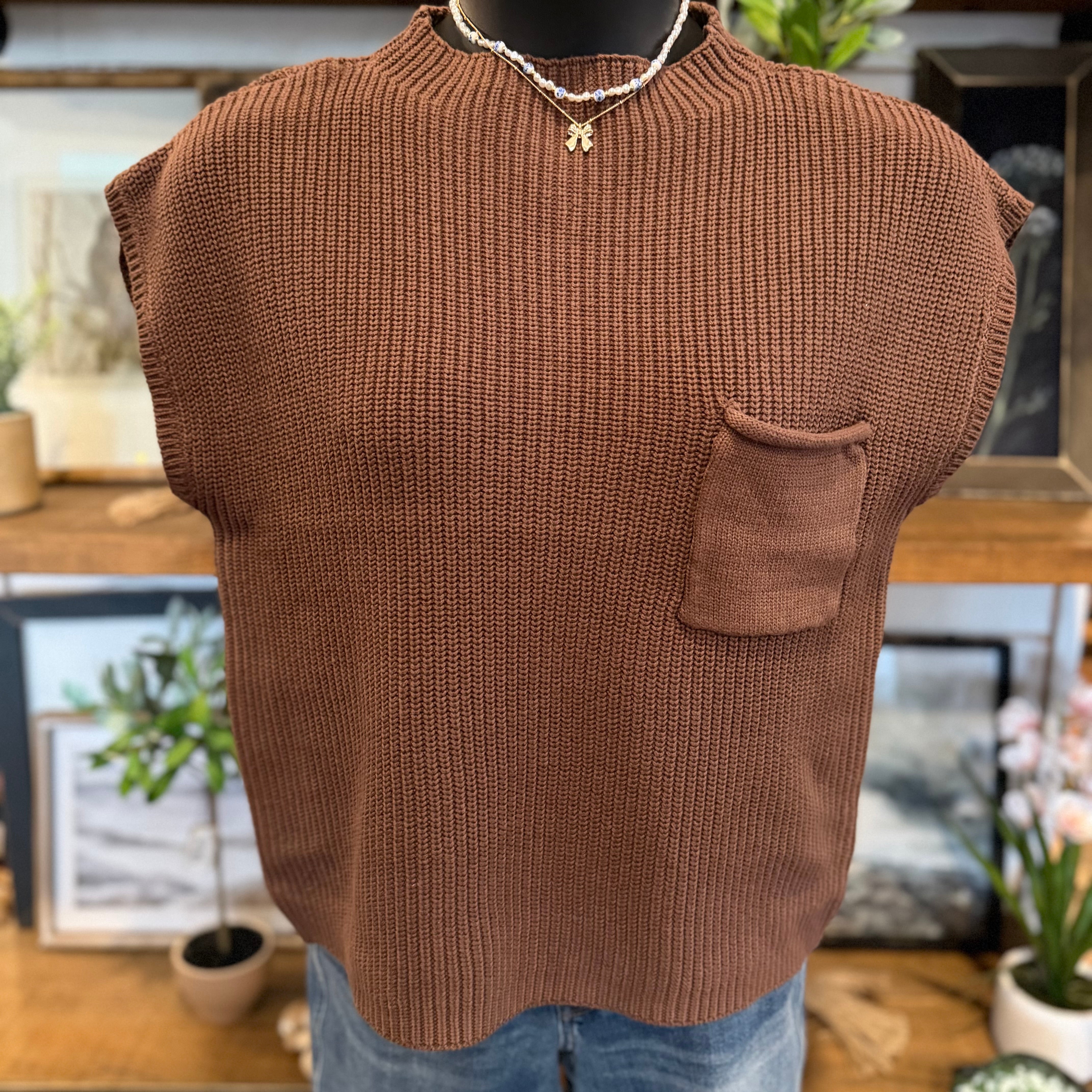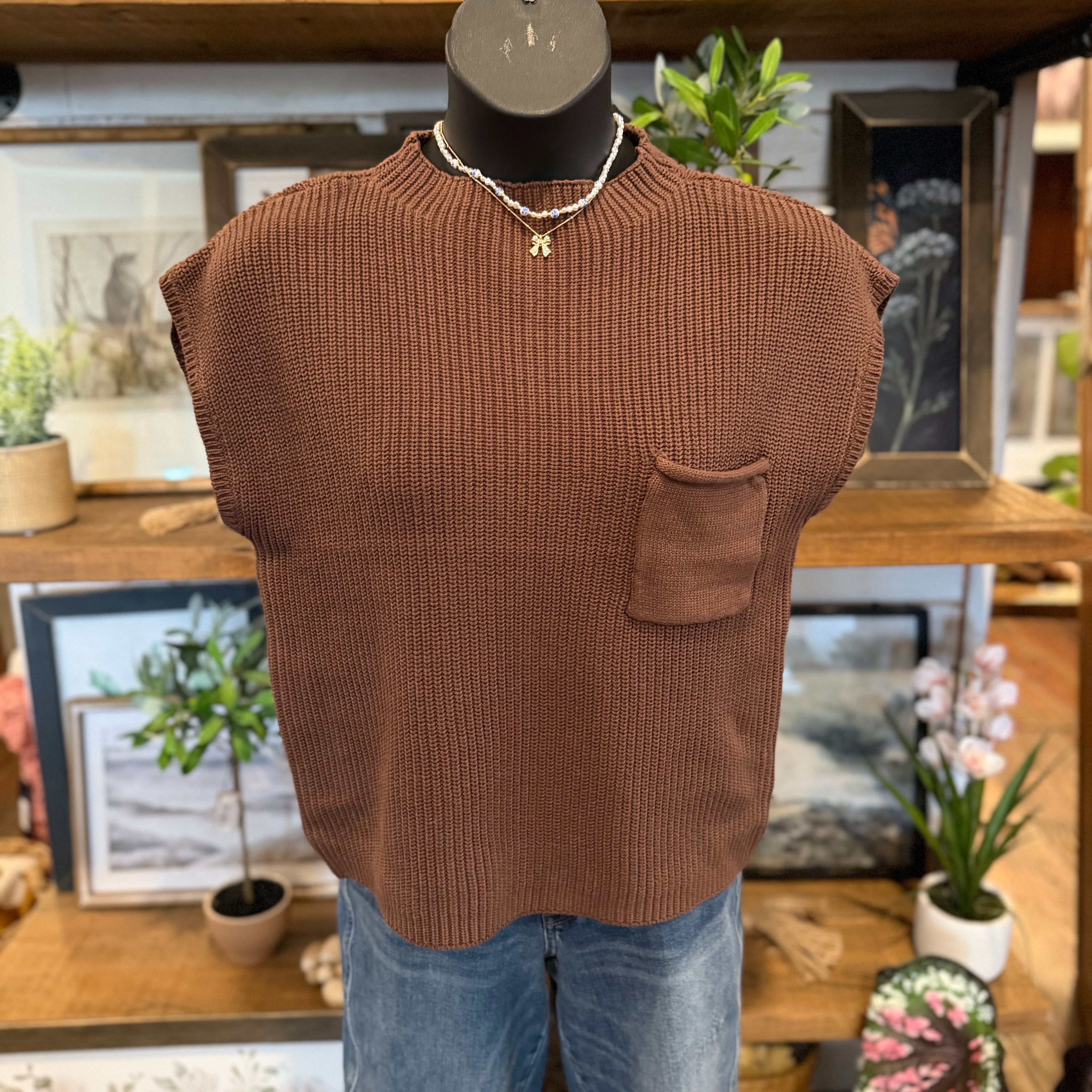 Mock Neck Short Sleeve Sweater | Brown
