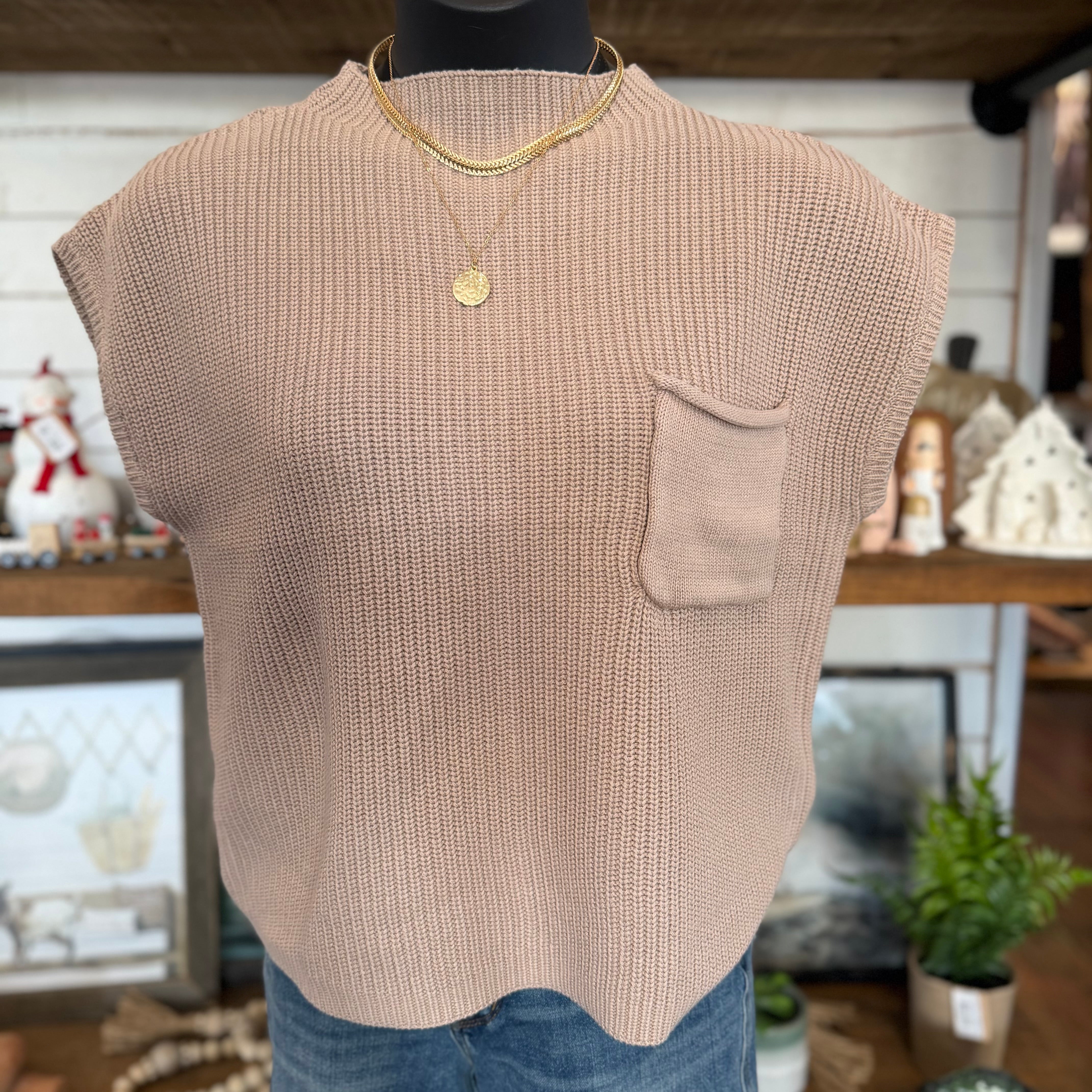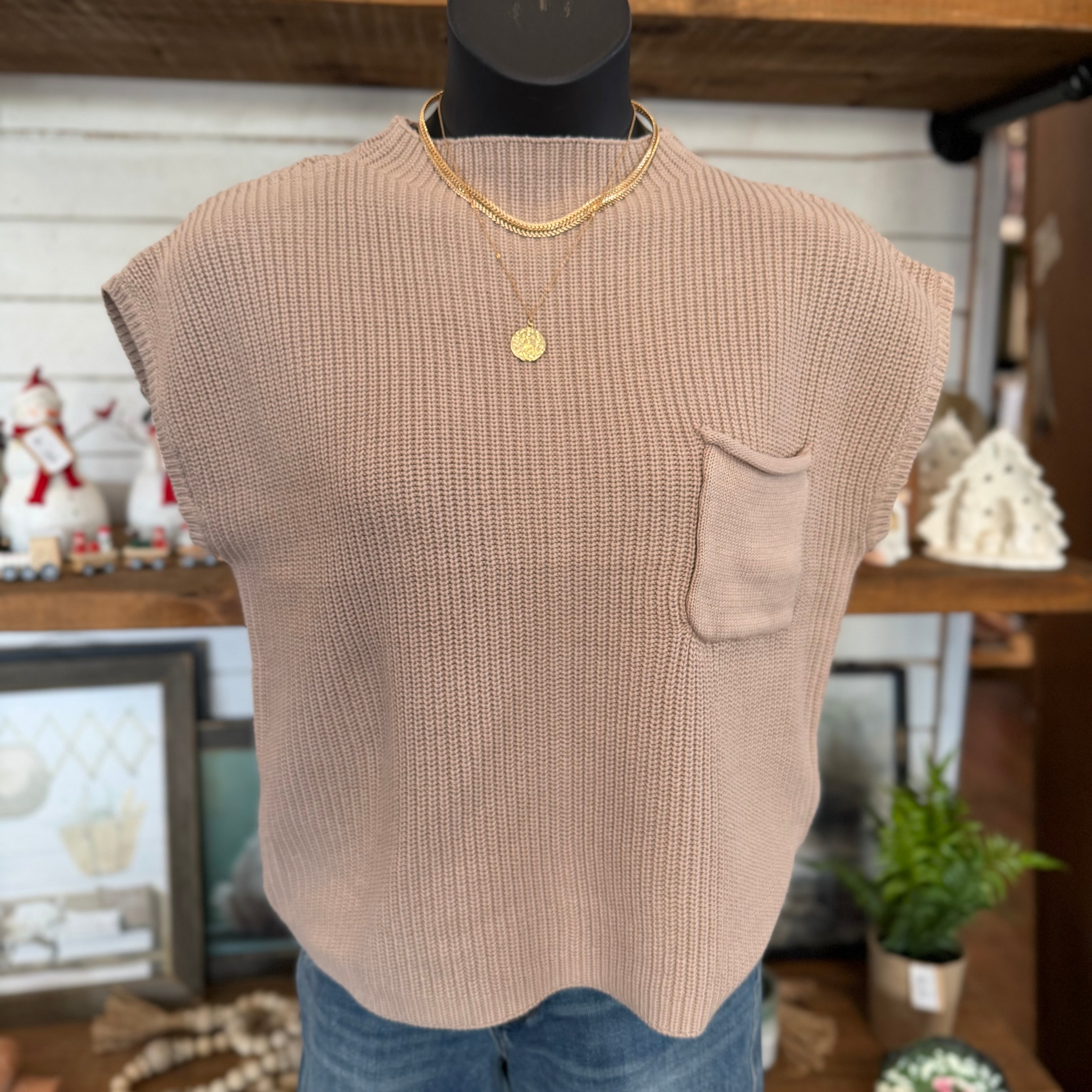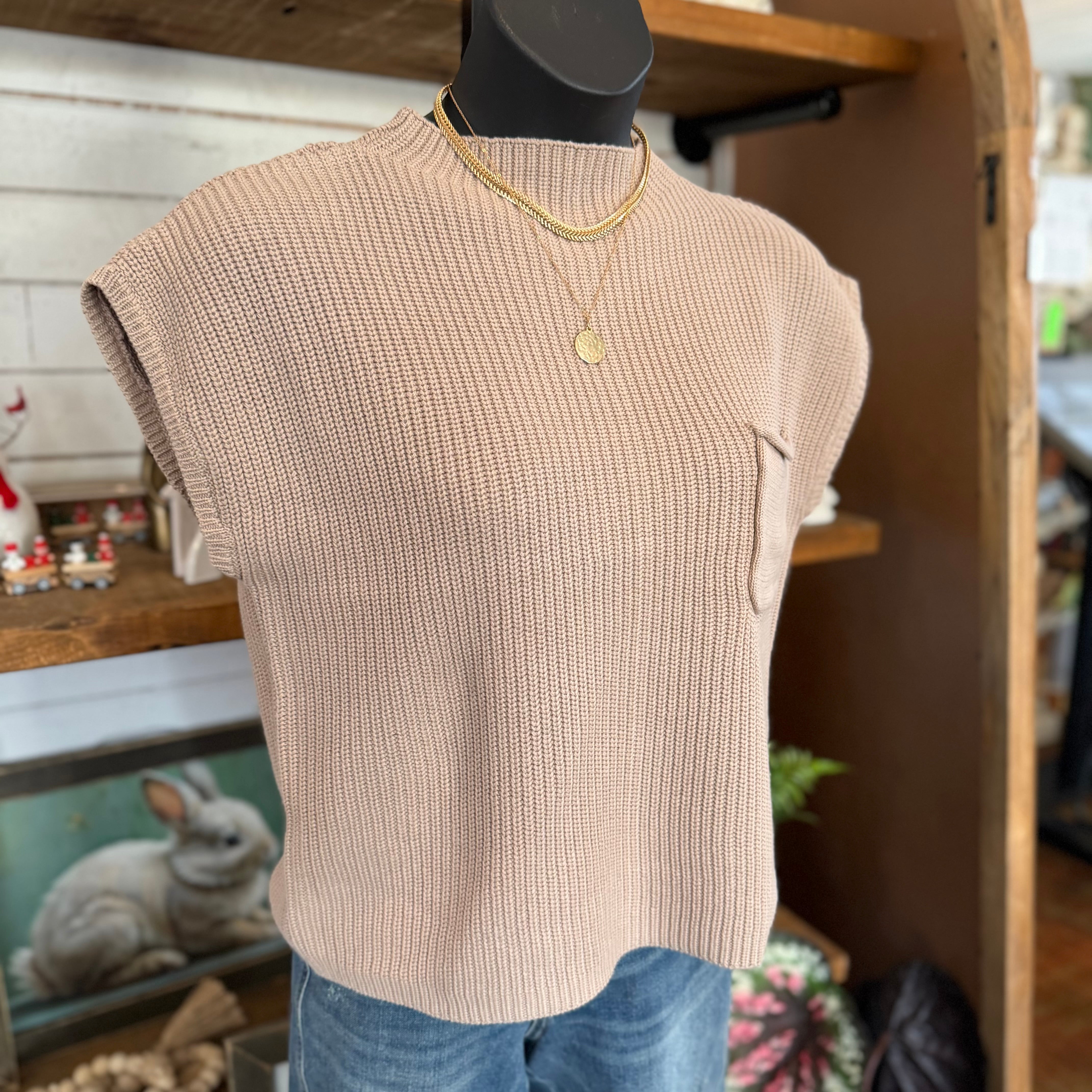Mock Neck Short Sleeve Sweater | Lt Mocha