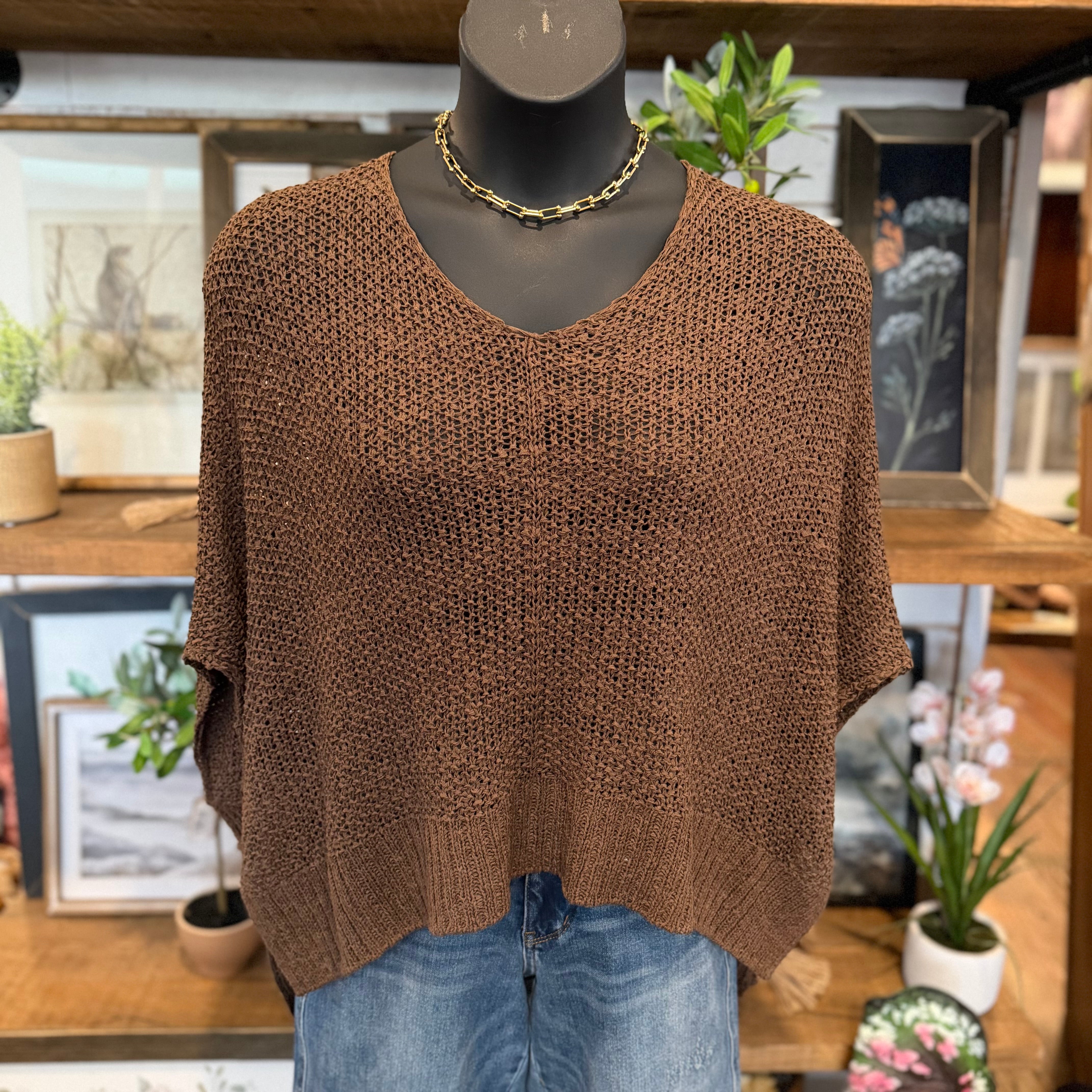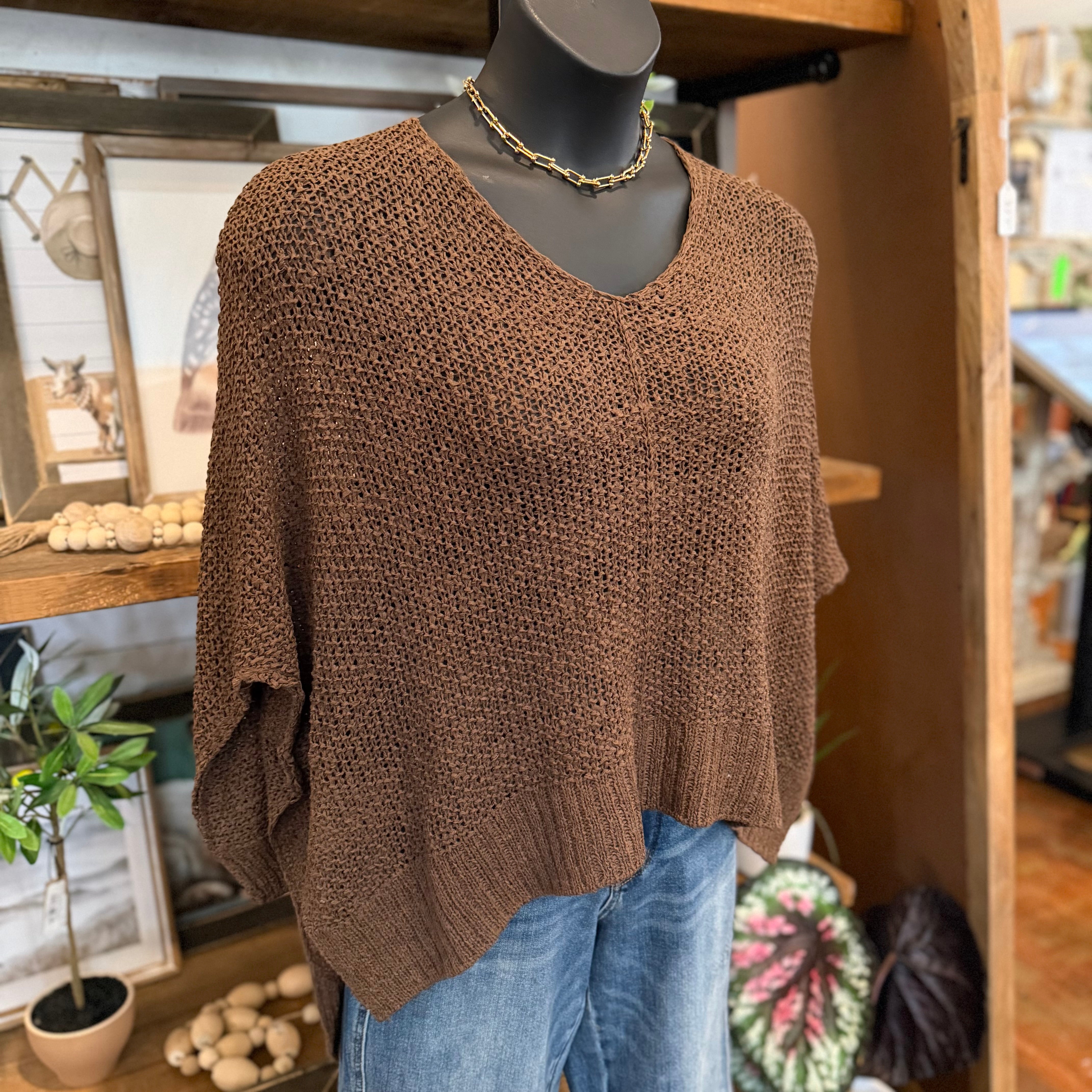 Dolman Sleeve V-neck Sweater | Brown