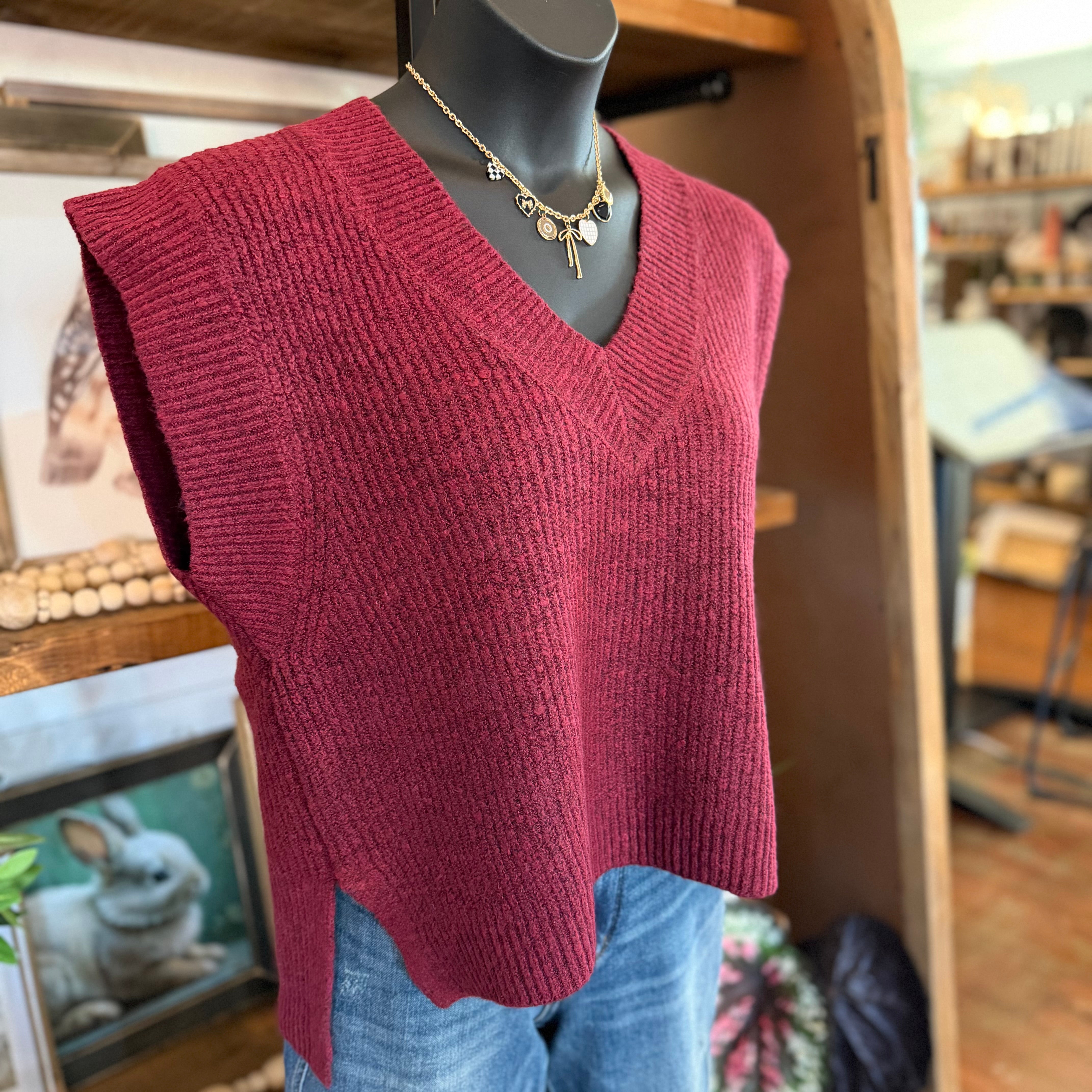 Oversize Sweater Vest With Side Slit | Cabernetb