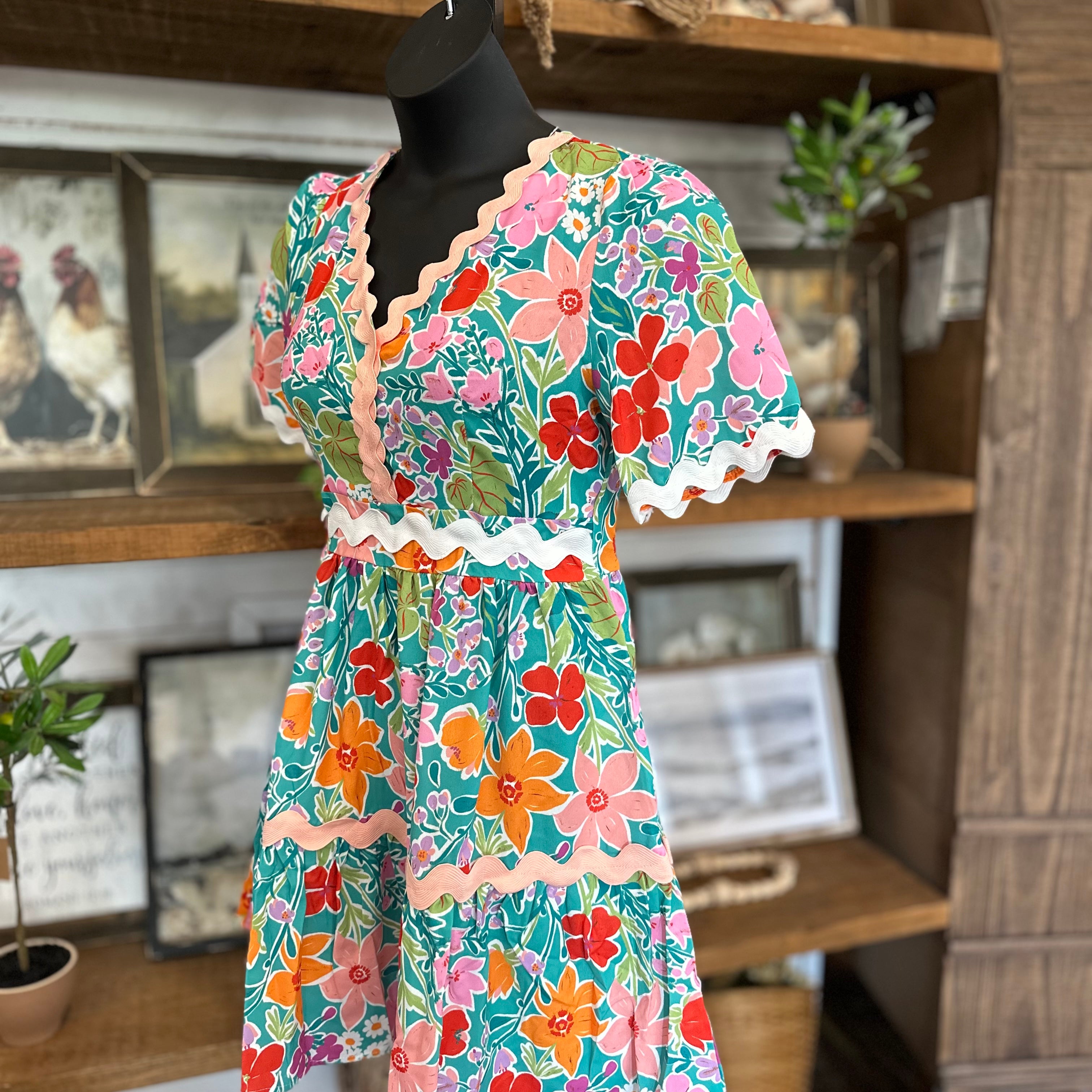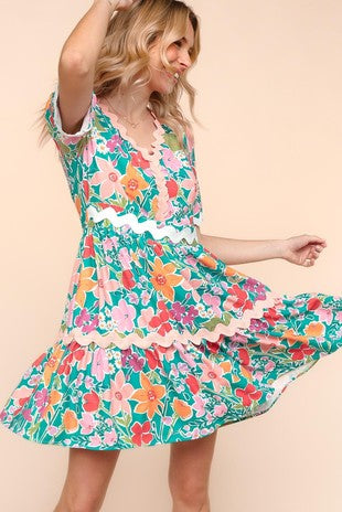 Plus Abstract Print Ruffle Neck Mini Dress