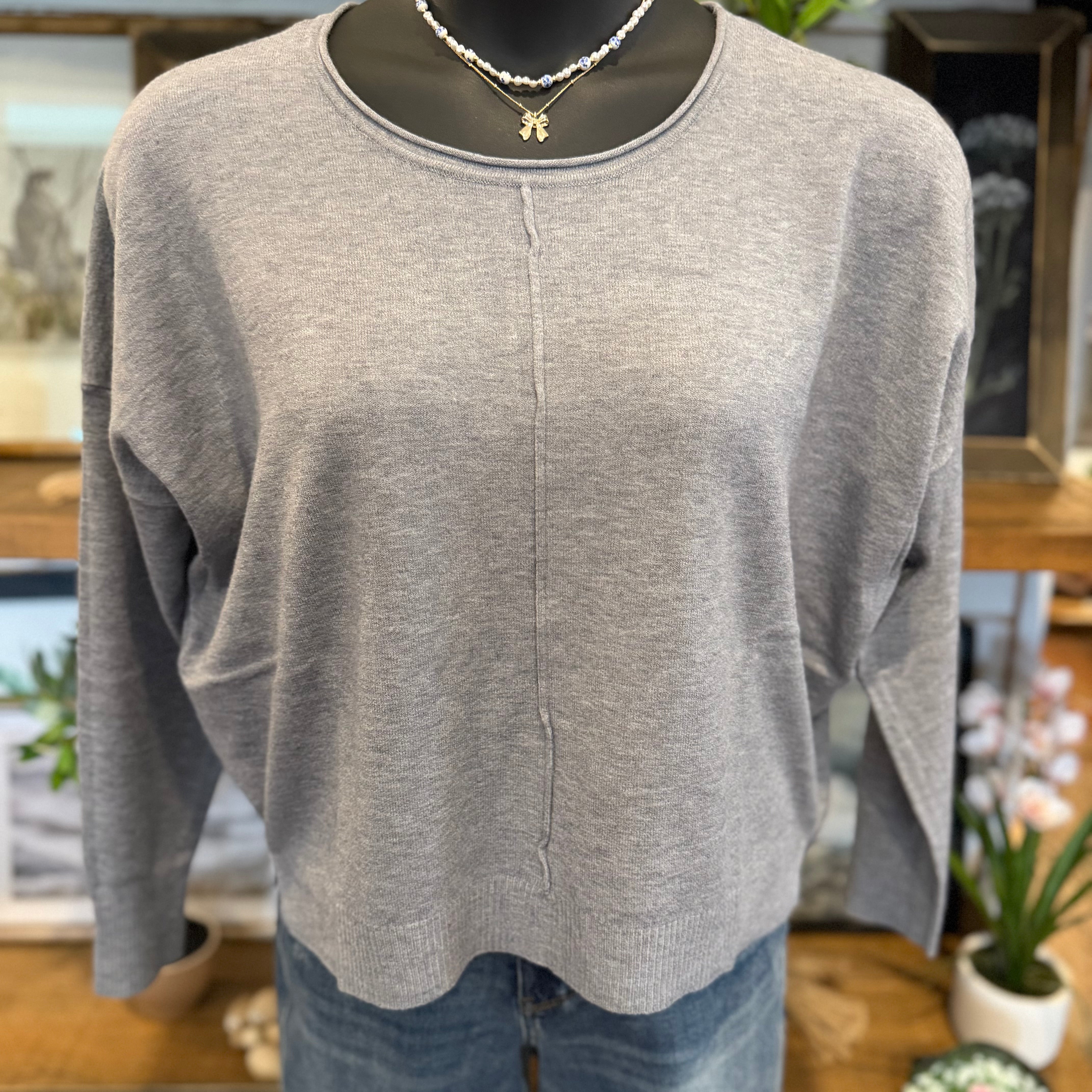 Viscose Front Seam Round-neck Sweater | H Grey