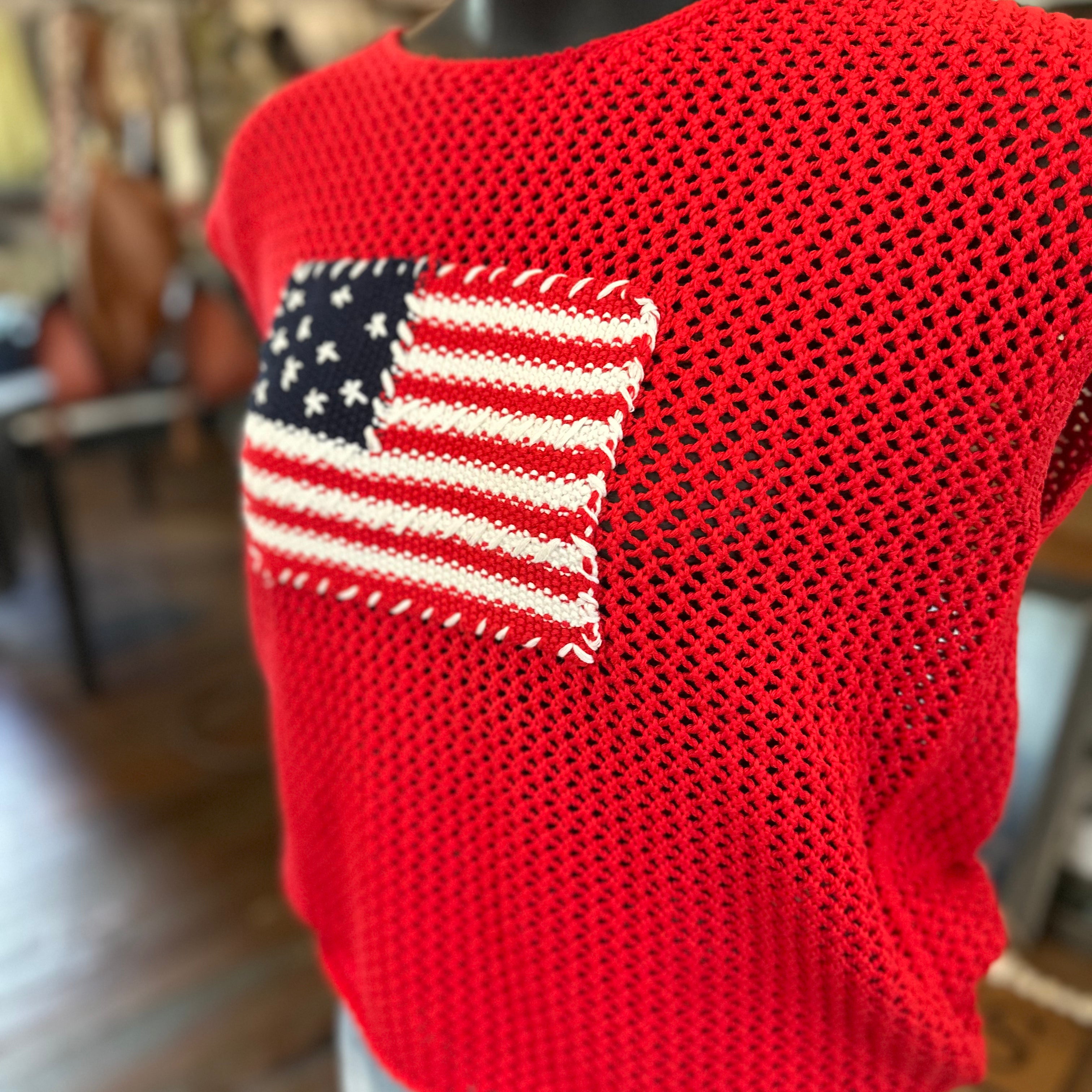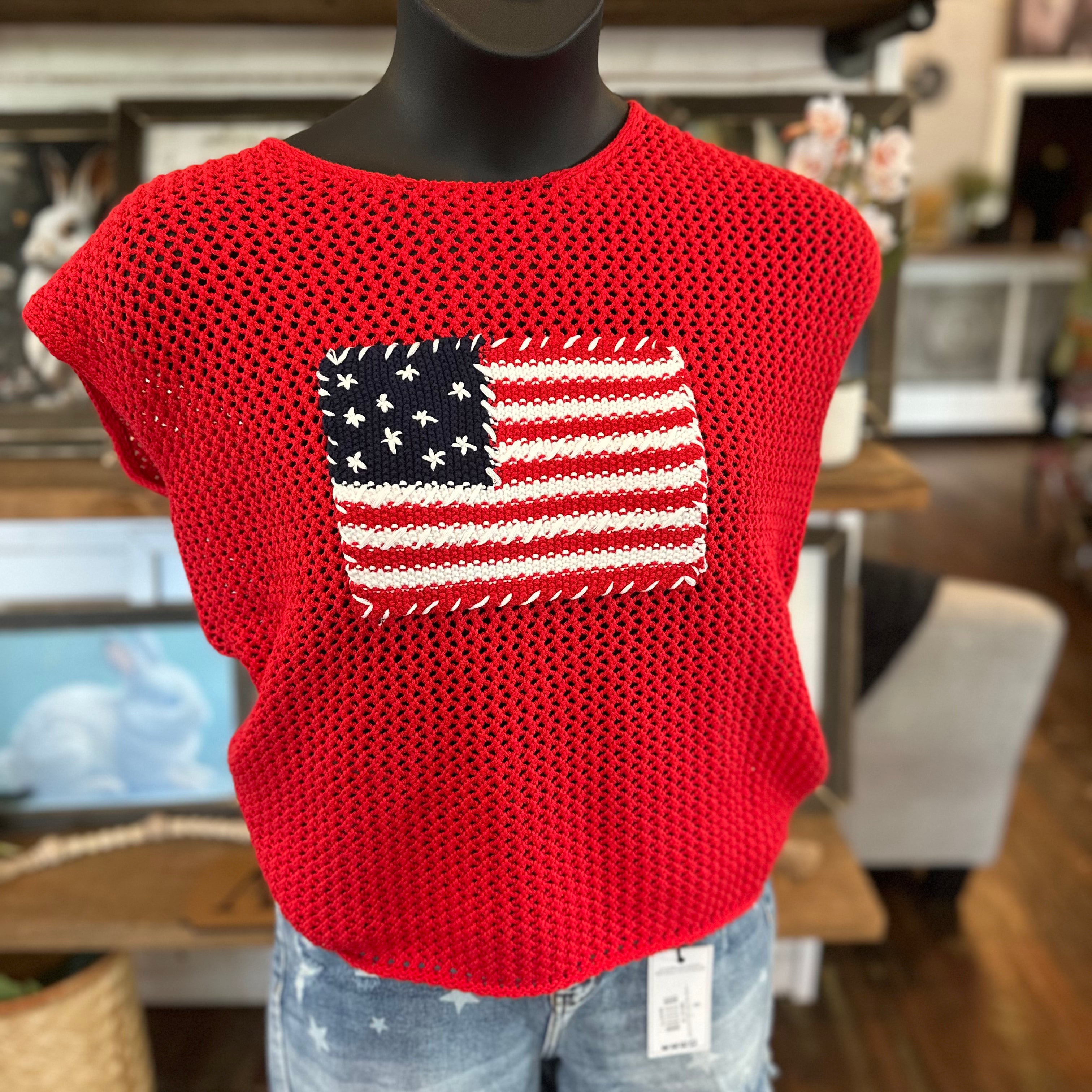 American Flag Heart Sweater Top | Ivory