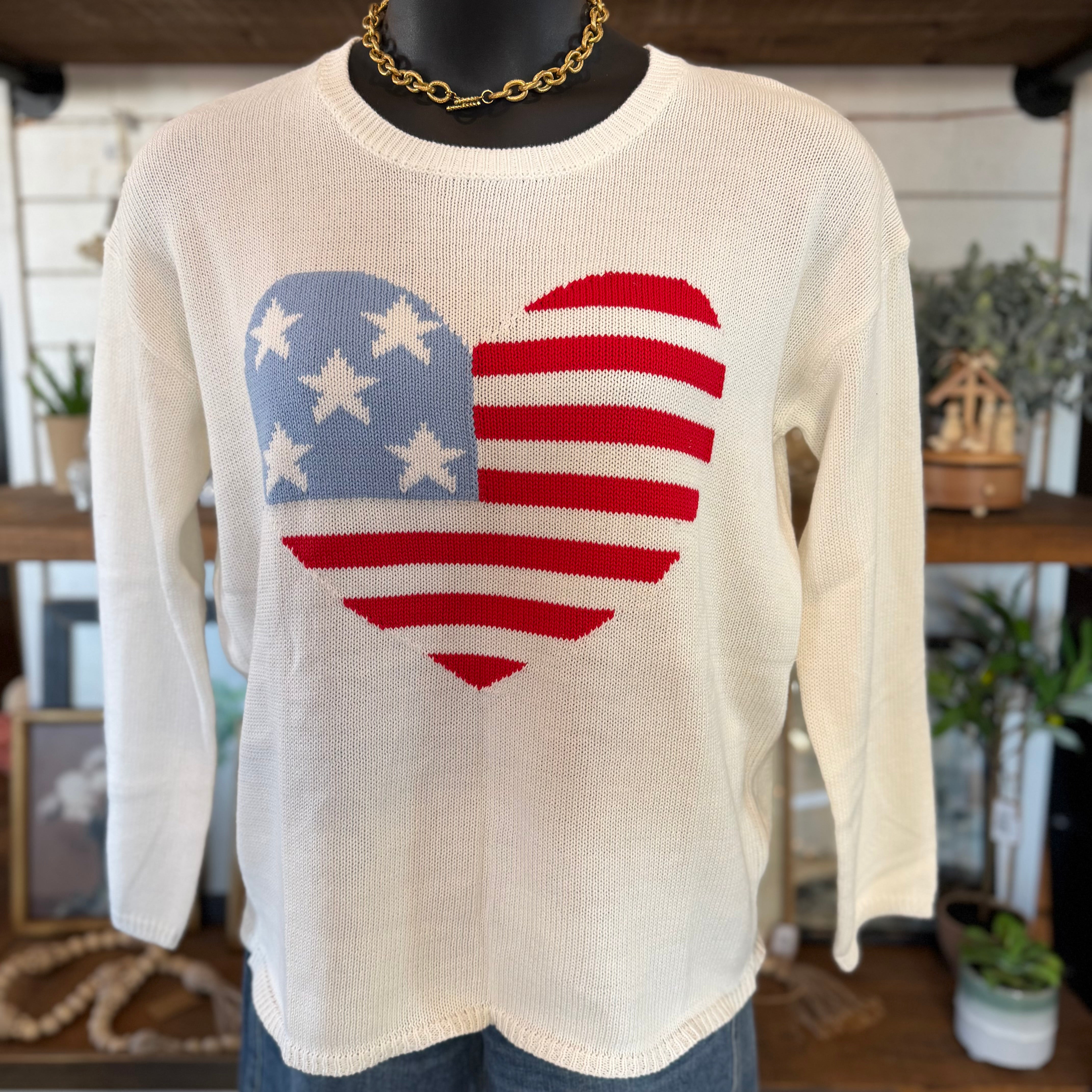 American Flag Heart Sweater Top | Ivory