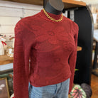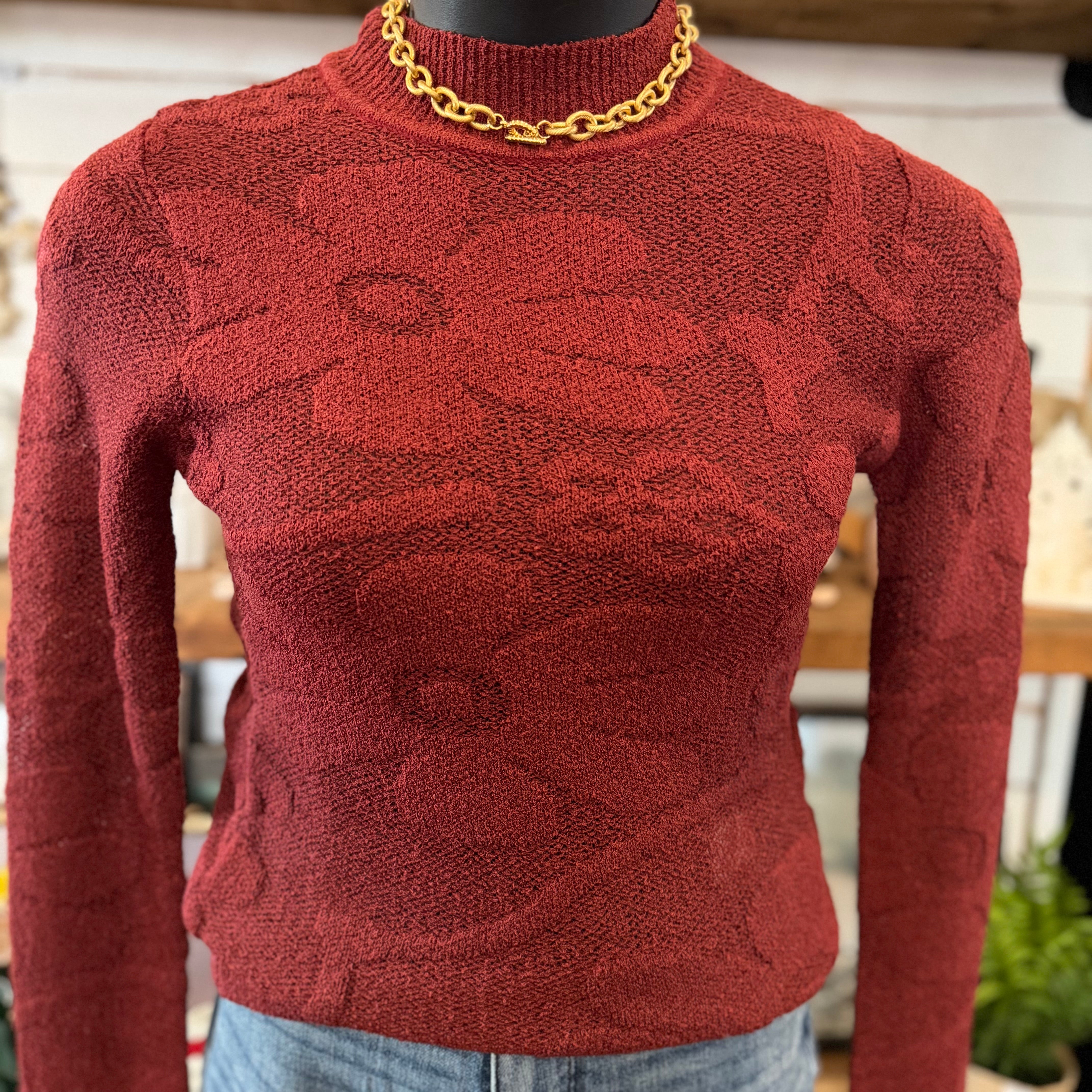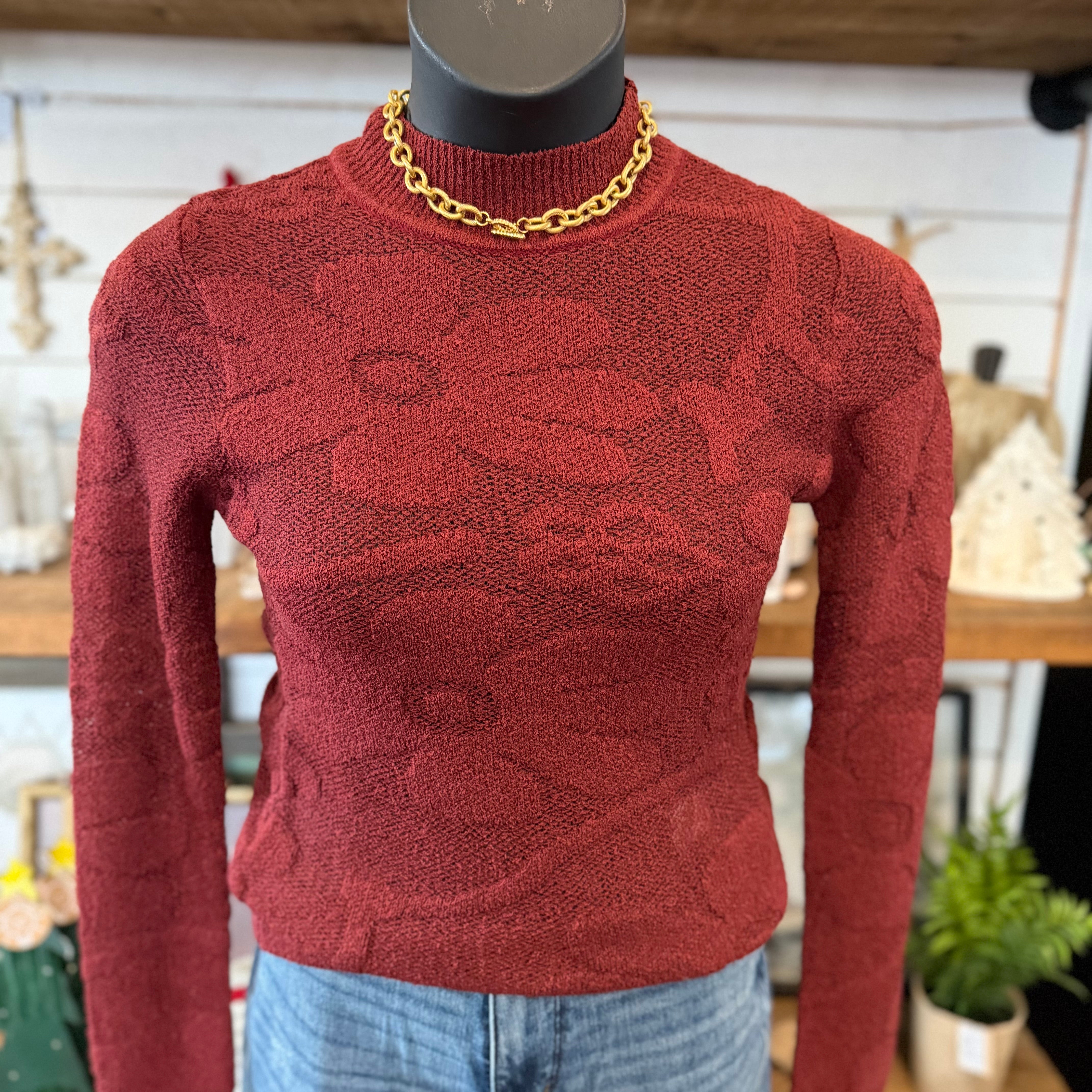Floral Jacquard Textured Mock Neck Sweater Top | Burgundy