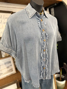 Frayed Trim Denim Button Top | Denim