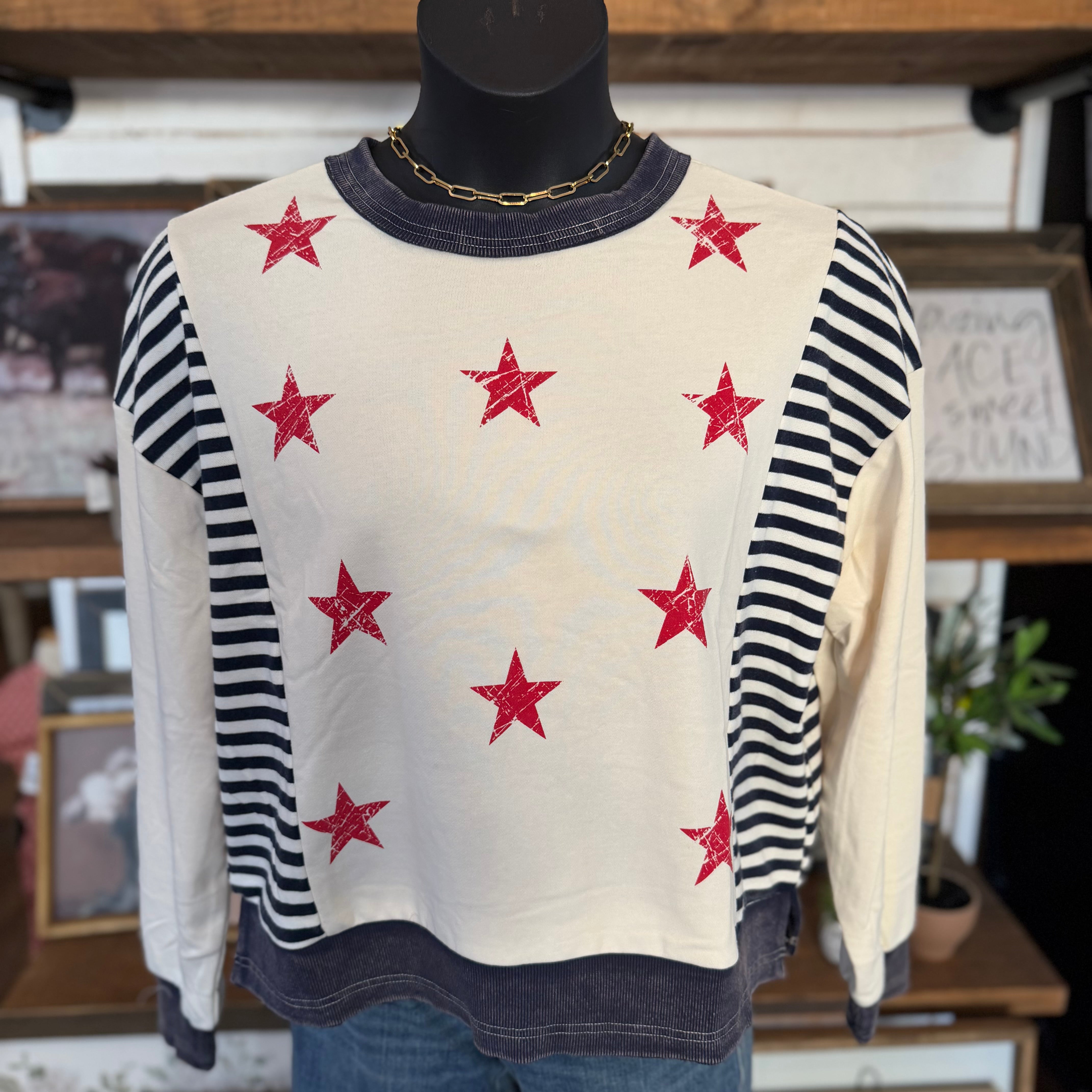 Mineral Washed Stars & Stripes Sweatshirt | Morning Oat