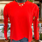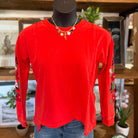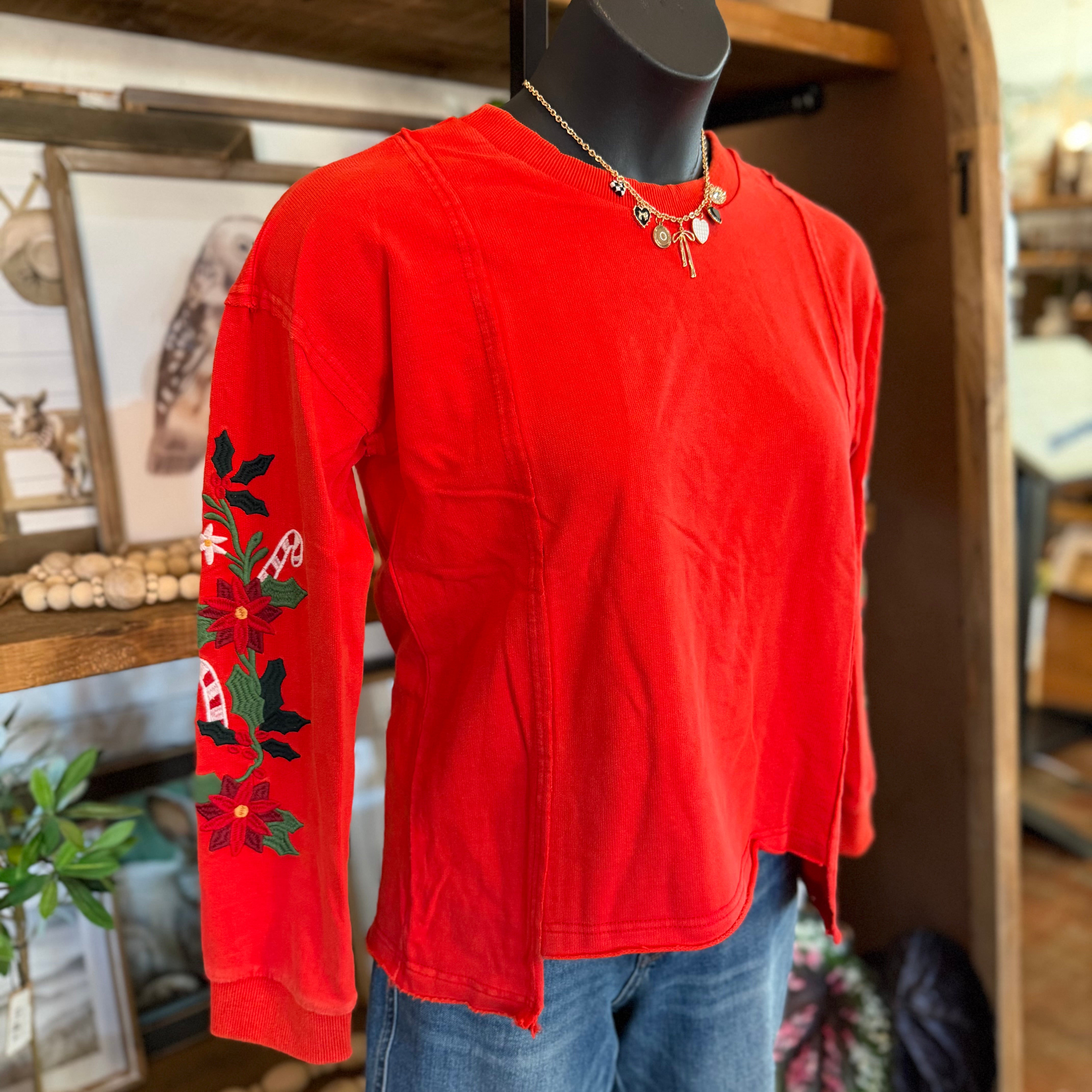 Mistletoe Embroidered Mineral Washed Knit Top | Washed Red