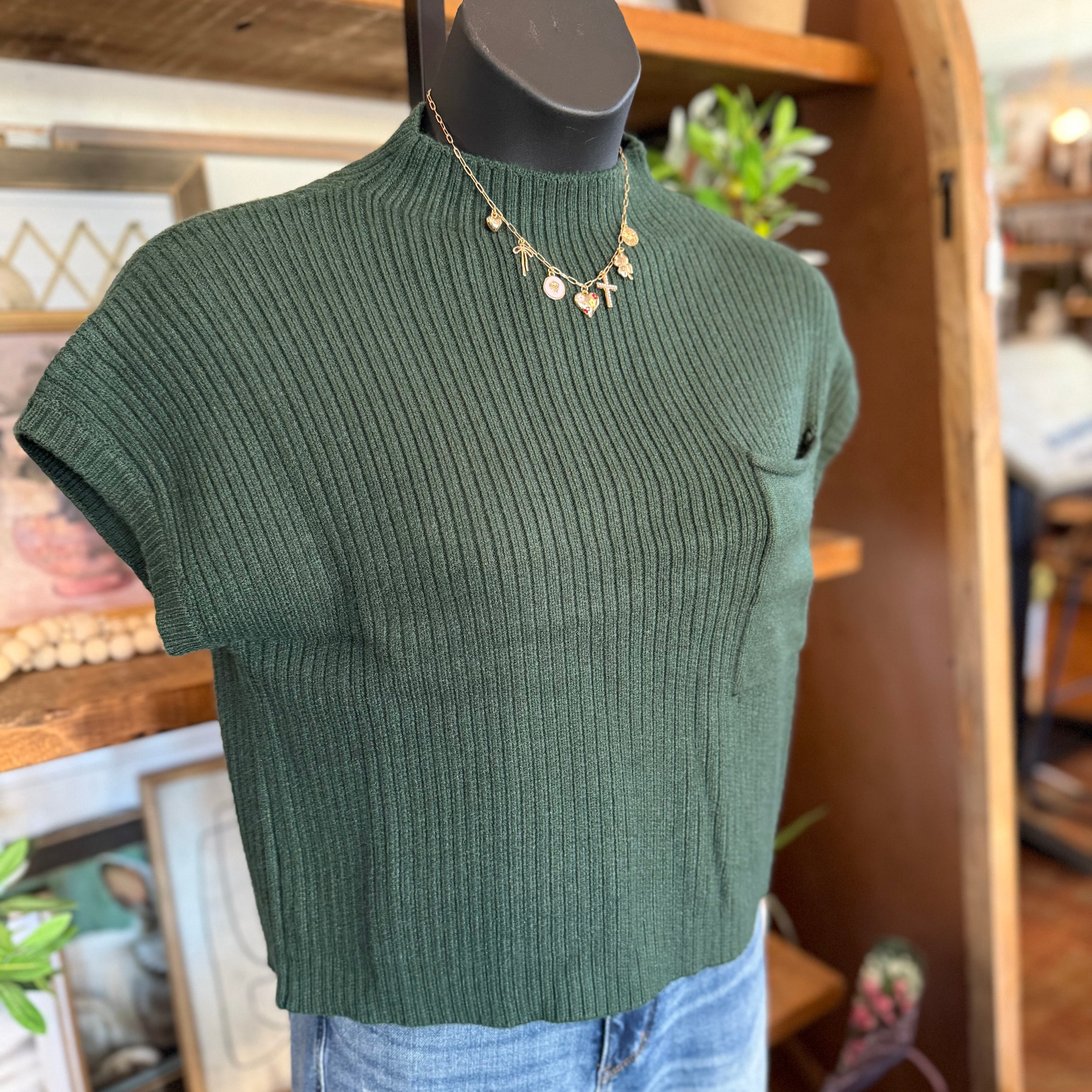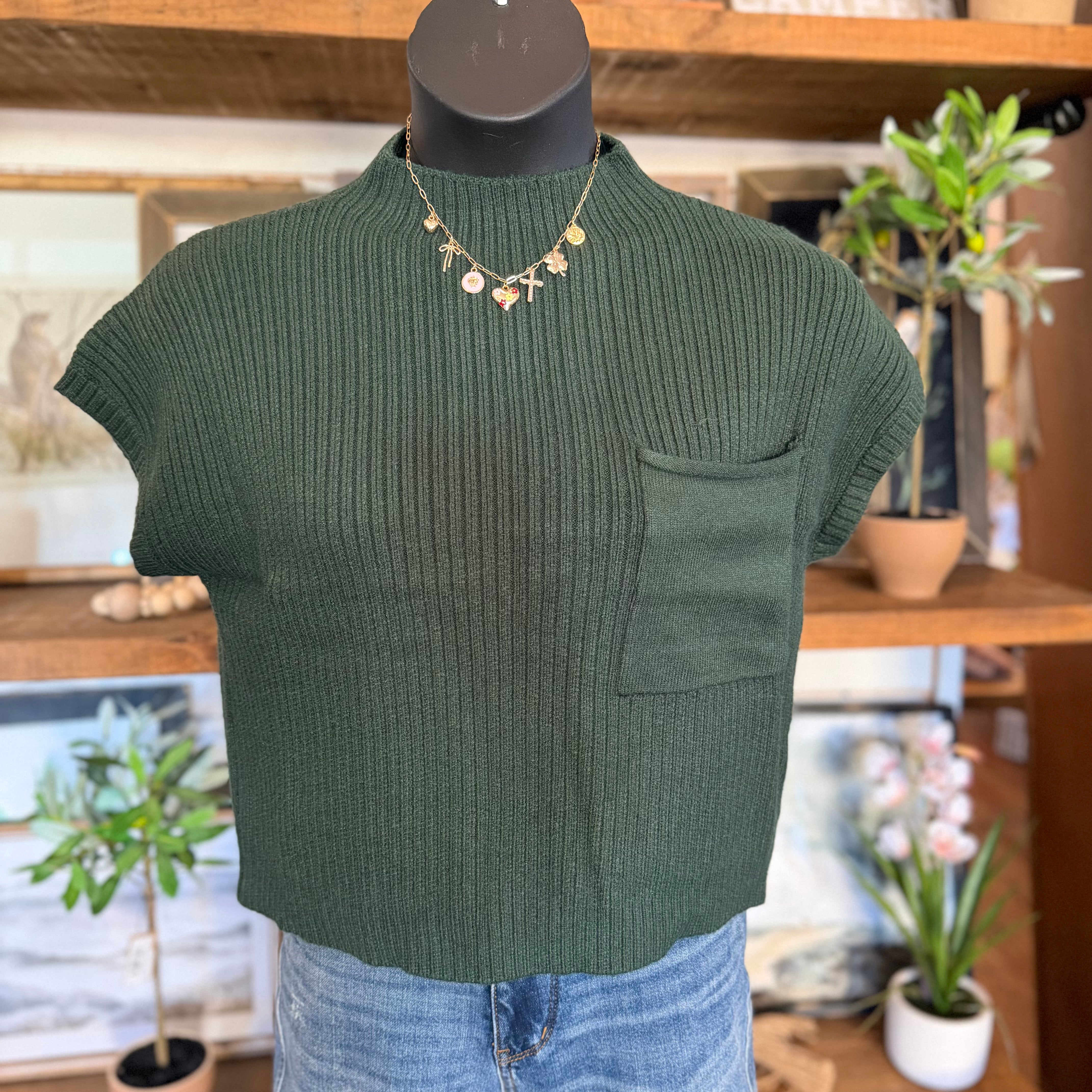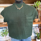 Mock Neck Pocket Detail Short Sleeve Knit Sweater | Green
