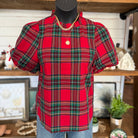 Plaid Ruffle Mock Neck Bubble Sleeve Blouse | Red Combo