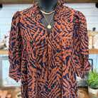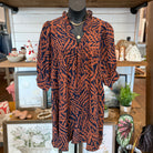 Plus Abstract Print Ruffle Neck Mini Dress